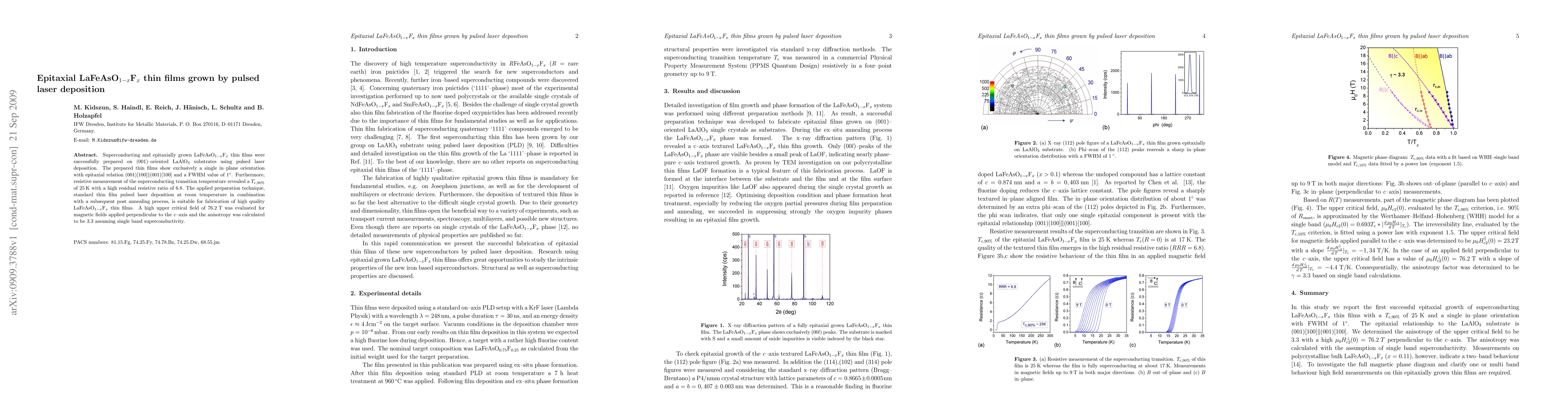 This study successfully grows epitaxial LaFeAsOF thin films using pulsed laser deposition, achieving a superconducting transition temperature of 25K and a high upper critical field of 76.2 T, demonstrating the potential of the technique for high-quality superconducting thin film fabrication.