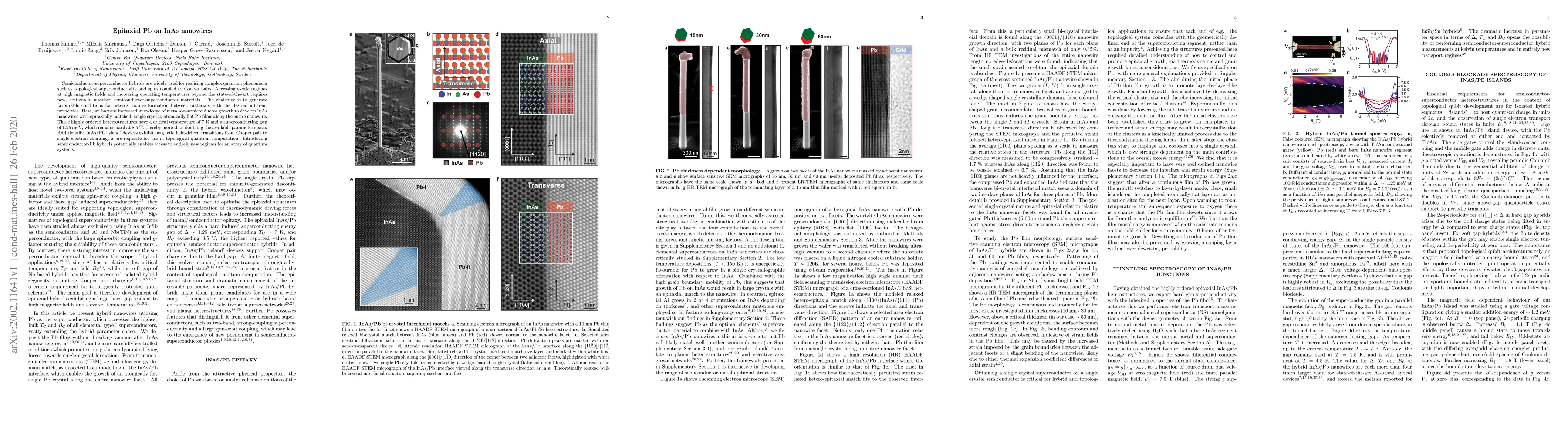 This paper develops epitaxially matched Pb films on InAs nanowires, achieving a critical temperature of 7 K and a superconducting gap of 1.25 meV that remains stable at high magnetic fields. These heterostructures enable new quantum phenomena and potential applications in topological quantum computation.