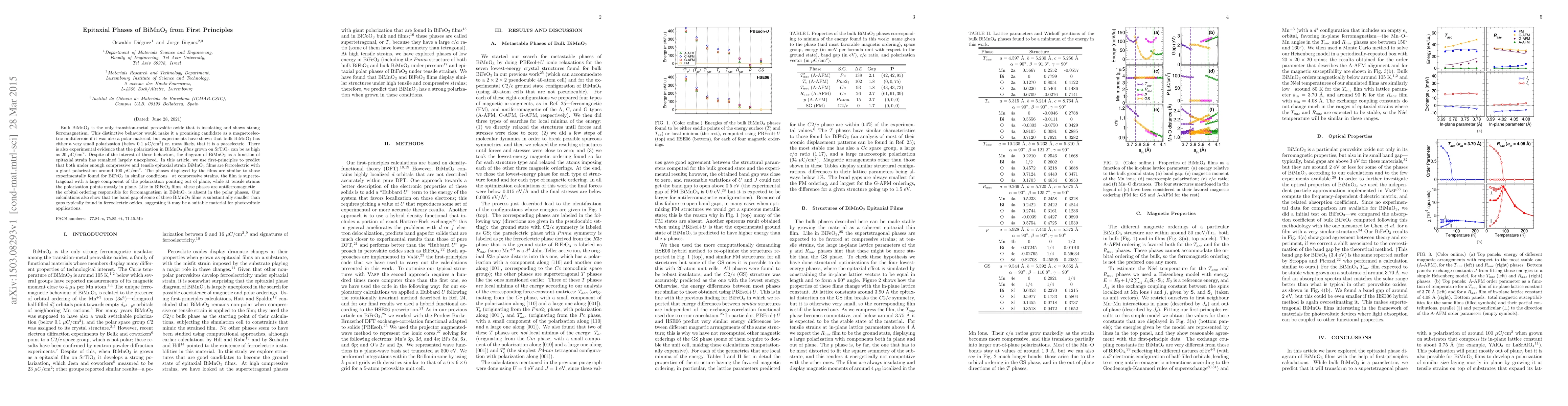 This paper uses first-principles calculations to predict that BiMnO$_3$ films under epitaxial strain can become ferroelectric with large polarization, similar to BiFeO$_3$. It also suggests potential photovoltaic applications due to a reduced band gap in some of these phases.