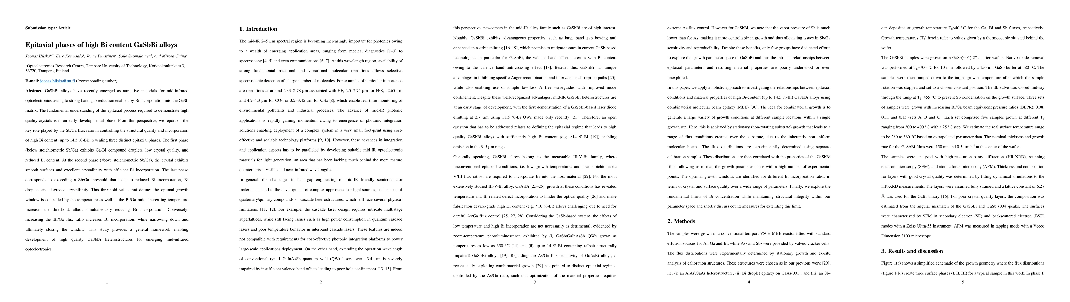 Researchers investigated GaSbBi alloys for mid-infrared optoelectronics, discovering three epitaxial phases controlled by Sb/Ga flux ratio and temperature, enabling high-quality crystals with efficient Bi incorporation.