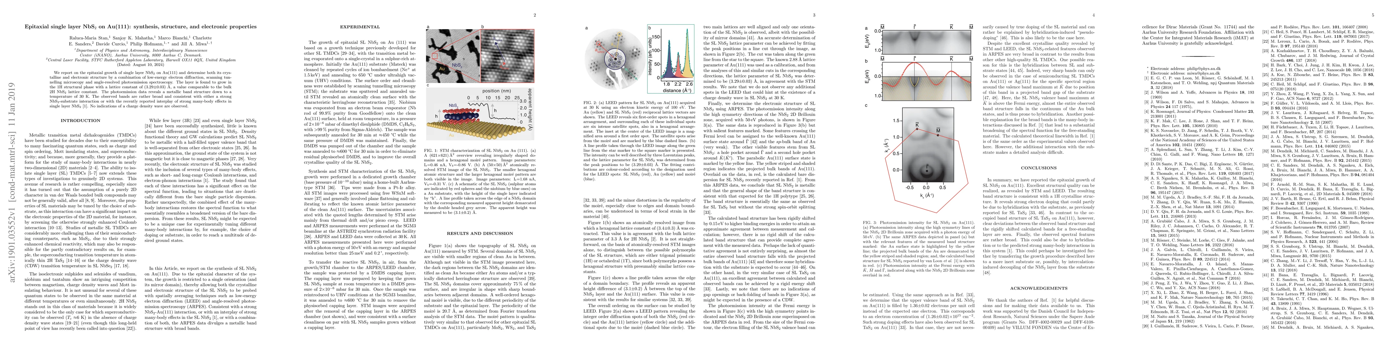 Researchers successfully grew a single layer of NbS2 on Au(111) substrate, revealing a metallic band structure with strong interactions between the material and substrate.