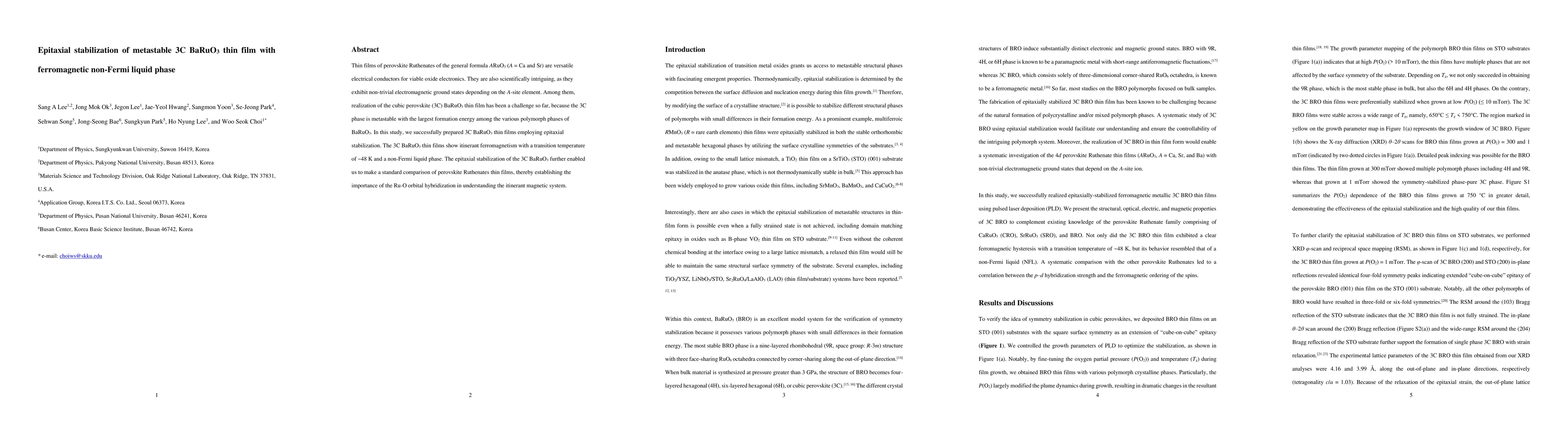 This research successfully stabilizes metastable 3C BaRuO3 thin films epitaxially, revealing itinerant ferromagnetism and a non-Fermi liquid phase at ~48 K, highlighting the importance of Ru-O orbital hybridization in understanding magnetic systems.