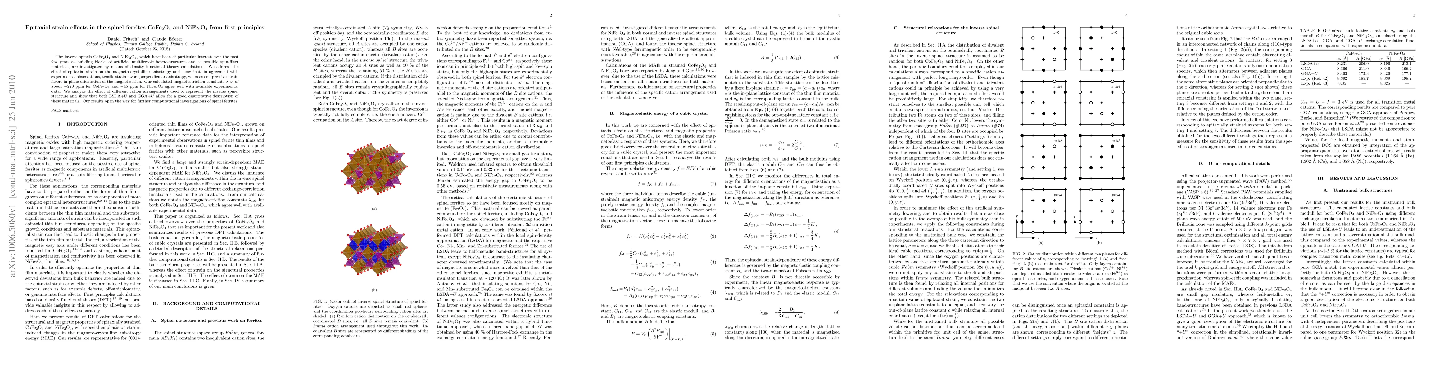 This study investigates the effects of epitaxial strain on the magneto-crystalline anisotropy of spinel ferrites CoFe2O4 and NiFe2O4 using density functional theory. Tensile strain favors perpendicular anisotropy, while compressive strain favors in-plane magnetization orientation, aligning with experimental observations.