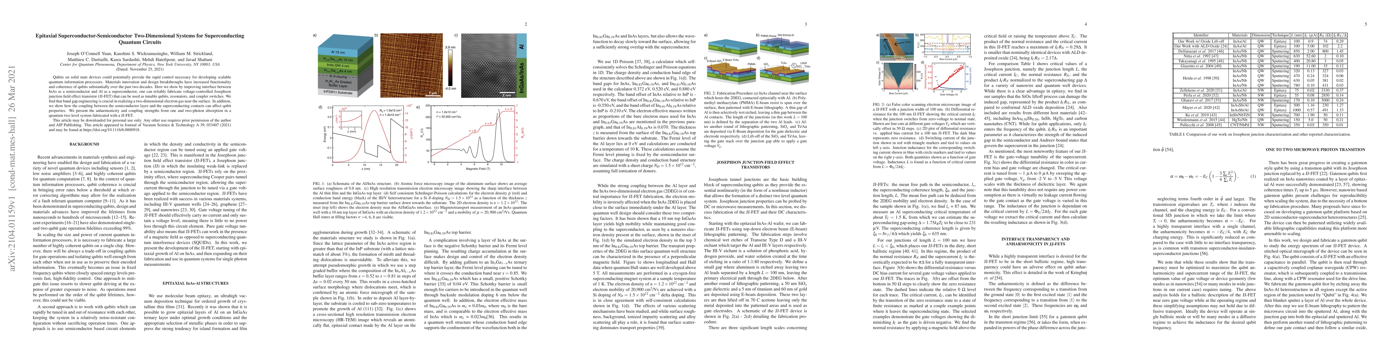 Qubits on solid state devices could potentially provide the rapid control necessary for developing scalable quantum information processors. Materials innovation and design breakthroughs have increased functionality and coherence of qubits substantially over the past two decades. Here we show by improving interface between InAs as a semiconductor and Al as a superconductor, one can reliably fabricate voltage-controlled Josephson junction field effect transistor (JJ-FET) that can be used as tunable qubits, resonators, and coupler switches. We find that band gap engineering is crucial in realizing a two-dimensional electron gas near the surface. In addition, we show how the coupling between the semiconductor layer and the superconducting contacts can affect qubit properties. We present the anharmonicity and coupling strengths from one and two-photon absorption in a quantum two level system fabricated with a JJ-FET.
