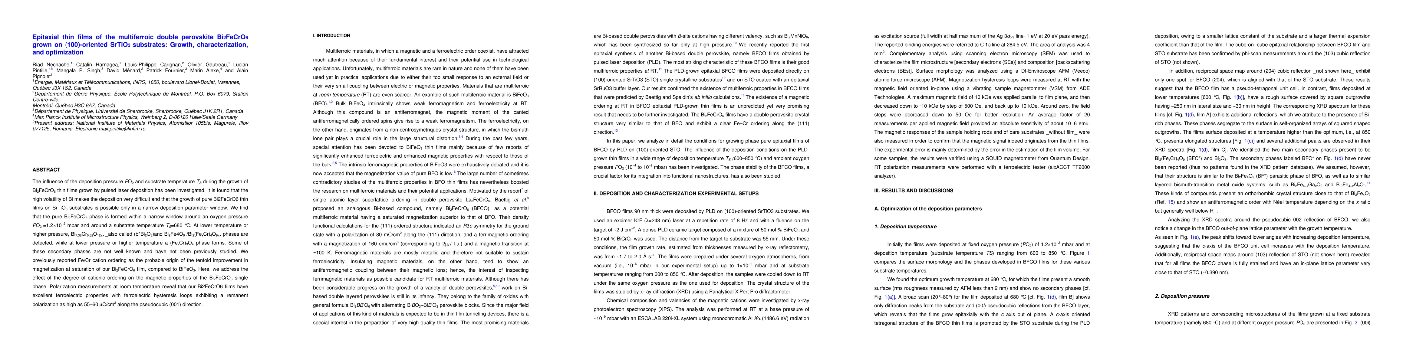 Researchers grew high-quality epitaxial thin films of multiferroic Bi2FeCrO6 on SrTiO3 substrates, optimizing growth conditions to form pure Bi2FeCrO6 with excellent ferroelectric properties.