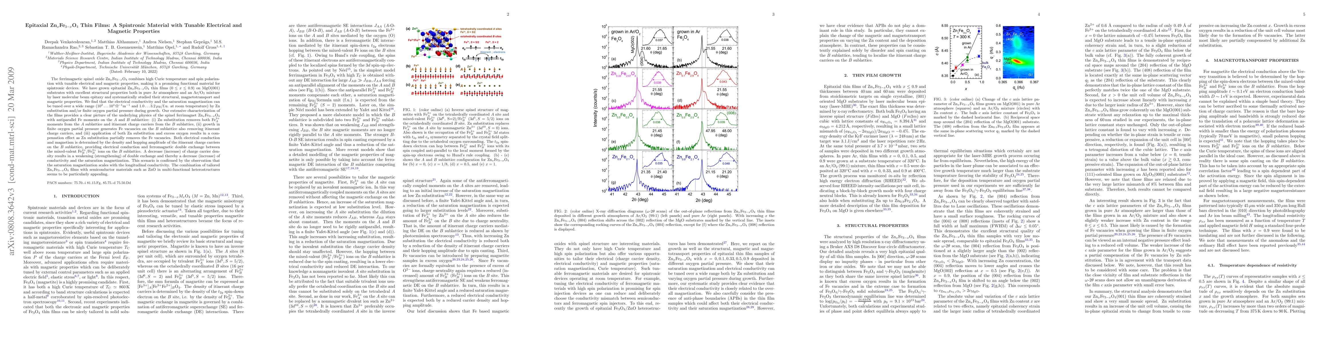The ferrimagnetic spinel oxide Zn(x)Fe(3-x)O(4) combines high Curie temperature and spin polarization with tunable electrical and magnetic properties, making it a promising functional material for spintronic devices. We have grown epitaxial thin films with 0<=x<=0.9 on MgO(001) substrates with excellent structural properties both in pure Ar atmosphere and an Ar/O2 mixture by laser molecular beam epitaxy. We find that the electrical conductivity and the saturation magnetization can be tuned over a wide range during growth. Our extensive characterization of the films provides a clear picture of the underlying physics of this spinel ferrimagnet with antiparallel Fe moments on the A and B sublattice: (i) Zn substitution removes both Fe3+ moments from the A sublattice and itinerant charge carriers from the B sublattice, (ii) growth in finite oxygen partial pressure generates Fe vacancies on the B sublattice also removing itinerant charge carriers, and (iii) application of both Zn substitution and excess oxygen results in a compensation effect as Zn substitution partially removes the Fe vacancies. A decrease (increase) of charge carrier density results in a weakening (strengthening) of double exchange and thereby a decrease (increase) of conductivity and the saturation magnetization. This scenario is confirmed by the observation that the saturation magnetization scales with the longitudinal conductivity. The combination of tailored films with semiconductor materials such as ZnO in multi-functional heterostructures seems to be particularly appealing.