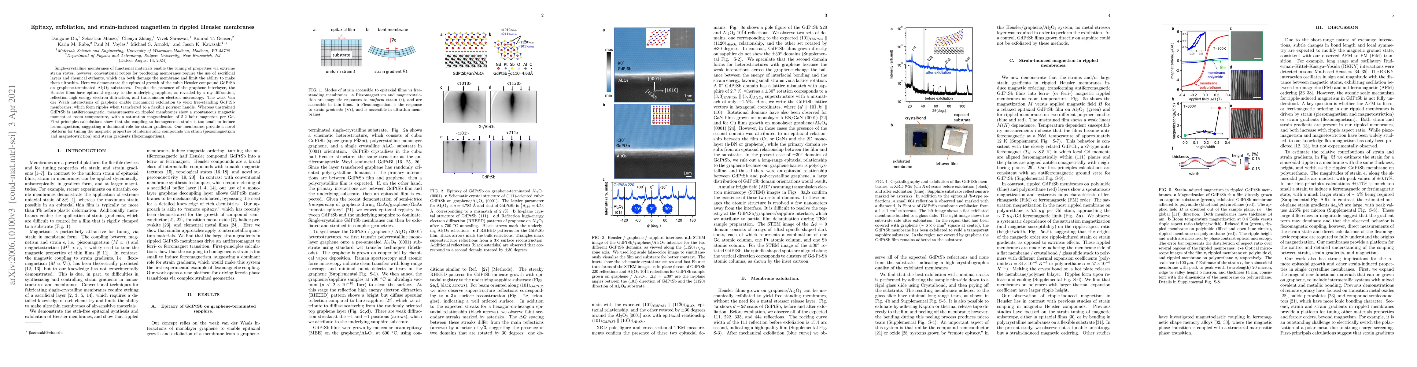 This paper demonstrates the epitaxial growth of GdPtSb Heusler membranes on graphene-terminated Al$_2$O$_3$ substrates, enabling strain-induced magnetism without sacrificial layers. The rippled membranes exhibit ferromagnetism at room temperature due to strain gradients, offering a new platform for strain-controlled magnetic properties.