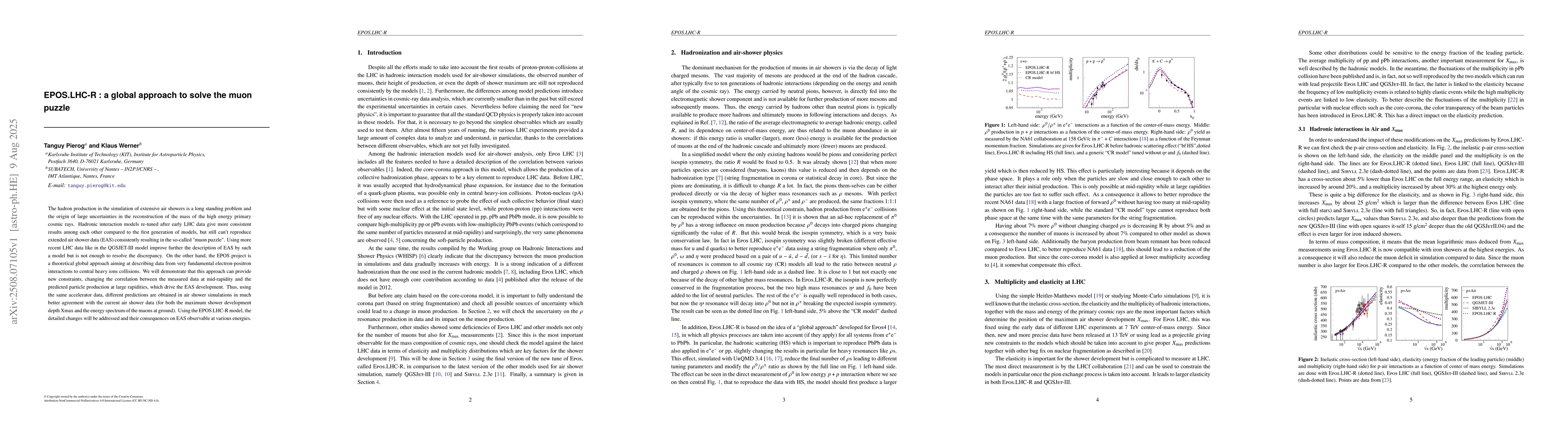 The hadron production in the simulation of extensive air showers is a long standing problem and the origin of large uncertainties in the reconstruction of the mass of the high energy primary cosmic rays. Hadronic interaction models re-tuned after early LHC data give more consistent results among each other compared to the first generation of models, but still can't reproduce extended air shower data (EAS) consistently resulting in the so-called "muon puzzle". Using more recent LHC data like in the QGSJET-III model improve further the description of EAS by such a model but is not enough to resolve the discrepancy. On the other hand, the EPOS project is a theoretical global approach aiming at describing data from very fundamental electron-positron interactions to central heavy ions collisions. We will demonstrate that this approach can provide new constraints, changing the correlation between the measured data at mid-rapidity and the predicted particle production at large rapidities, which drive the EAS development. Thus, using the same accelerator data, different predictions are obtained in air shower simulations in much better agreement with the current air shower data (for both the maximum shower development depth Xmax and the energy spectrum of the muons at ground). Using the EPOS LHC-R model, the detailed changes will be addressed and their consequences on EAS observable at various energies.