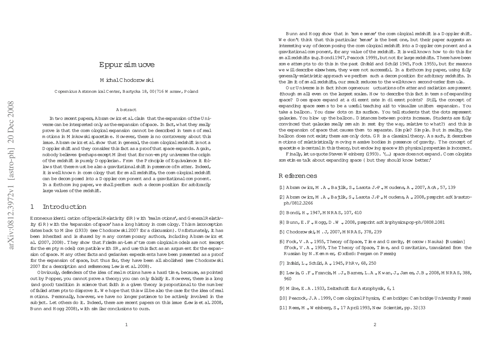 In two recent papers, Abramowicz et al. claim that the expansion of the Universe can be interpreted only as the expansion of space. In fact, what they really prove is that the cosmological expansion cannot be described in terms of real motions in Minkowski spacetime. However, there is no controversy about this issue. Abramowicz et al. show that in general, the cosmological redshift is not a Doppler shift and they consider this fact as a proof that space expands. Again, nobody believes (perhaps except Milne) that for non-empty universes the origin of the redshift is purely Dopplerian. From the Principle of Equivalence it follows that there must be also a gravitational shift in presence of matter. Indeed, it is well known in cosmology that for small redshifts, the cosmological redshift can be decomposed into a Doppler component and a gravitational component. In a forthcoming paper, we shall perform such a decomposition for arbitrarily large values of the redshift.
