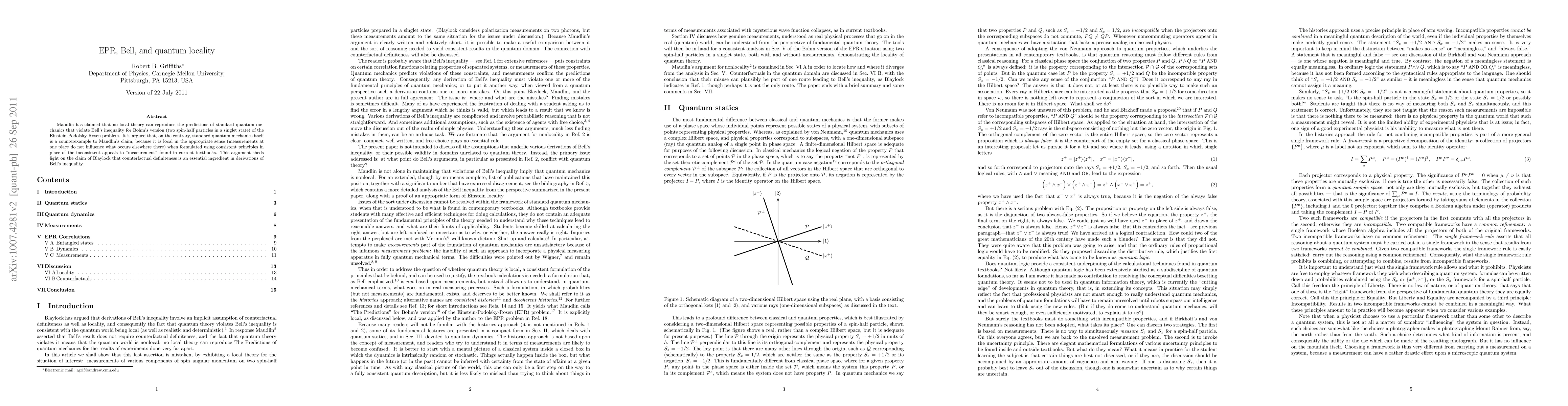 Maudlin has claimed that no local theory can reproduce the predictions of standard quantum mechanics that violate Bell's inequality for Bohm's version (two spin-half particles in a singlet state) of the Einstein-Podolsky-Rosen problem. It is argued that, on the contrary, standard quantum mechanics itself is a counterexample to Maudlin's claim, because it is local in the appropriate sense (measurements at one place do not influence what occurs elsewhere there) when formulated using consistent principles in place of the inconsistent appeals to "measurement" found in current textbooks. This argument sheds light on the claim of Blaylock that counterfactual definiteness is an essential ingredient in derivations of Bell's inequality.