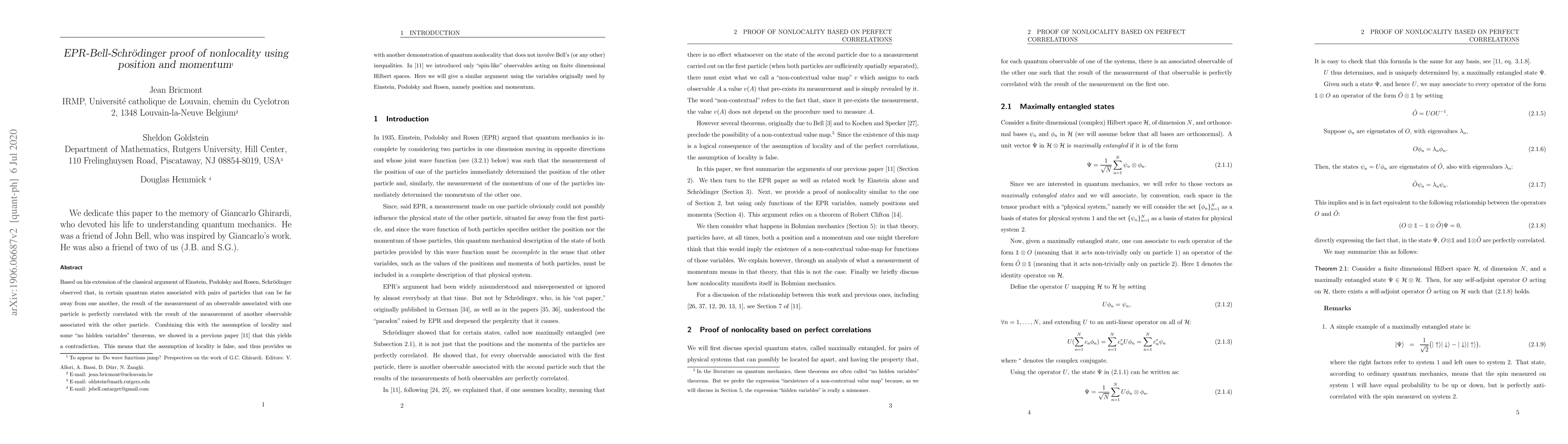 This paper proves nonlocality in quantum mechanics using position and momentum measurements, contradicting locality assumptions and demonstrating quantum entanglement.