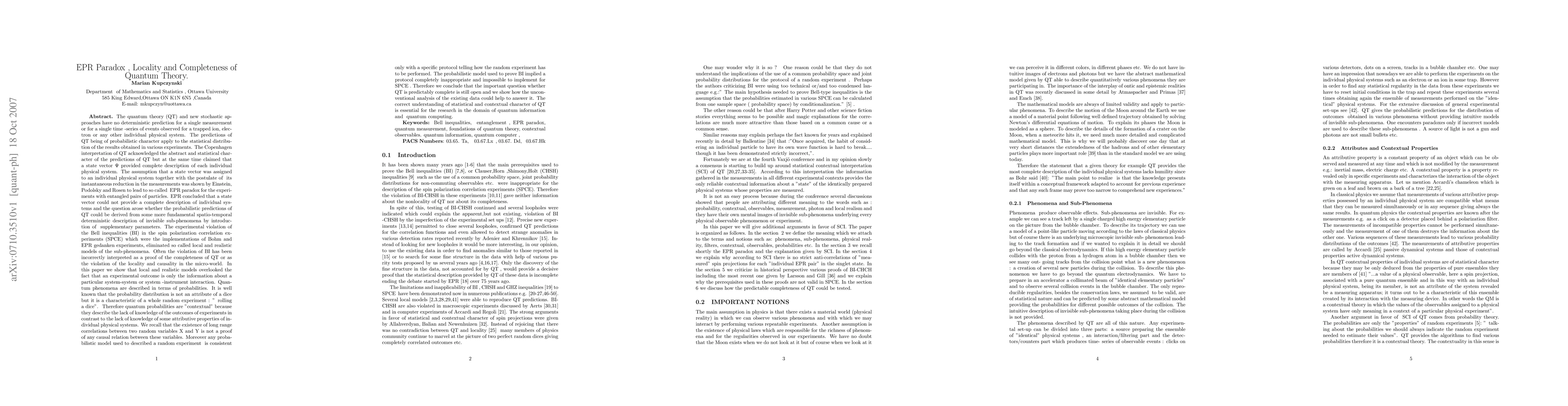 The paper discusses the probabilistic nature of quantum theory, challenging common misconceptions about its non-locality and completeness, highlighting the need for a nuanced understanding of statistical and contextual relationships in quantum phenomena.