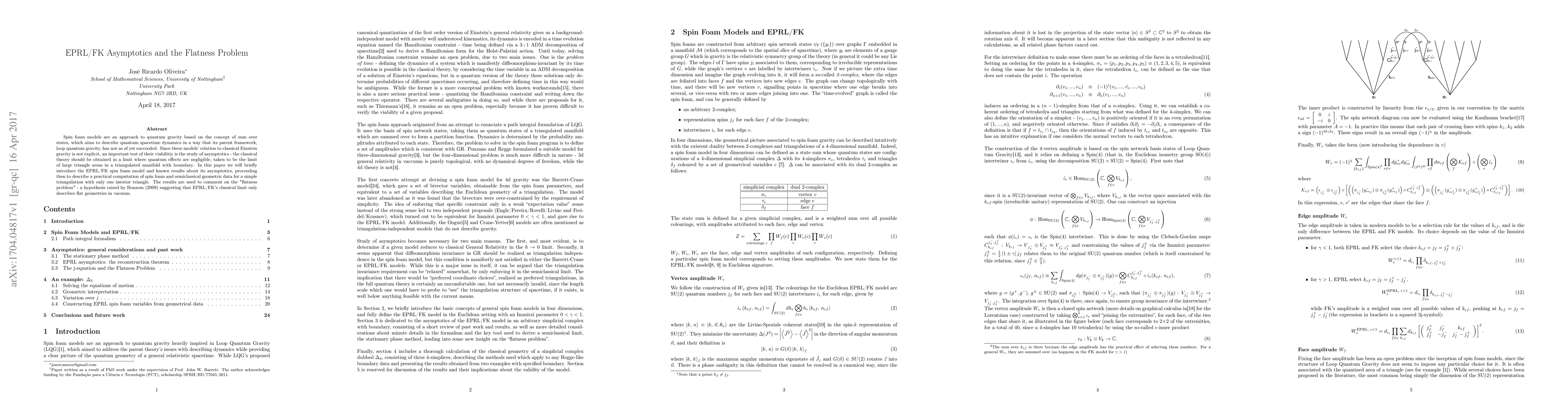 This paper introduces the EPRL/FK spin foam model and examines its asymptotics, focusing on the limit where quantum effects are negligible. It computes spin foam and semiclassical geometric data for a simple triangulation, discussing the "flatness problem" which suggests that the classical limit only describes flat geometries in vacuum.