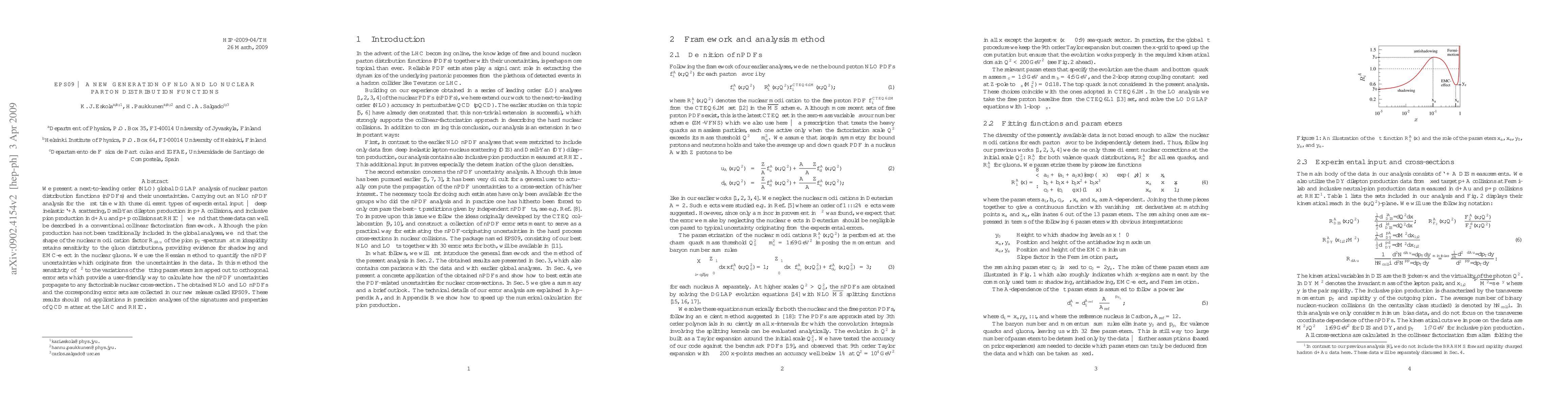 This paper presents a next-to-leading order (NLO) global analysis of nuclear parton distribution functions (nPDFs) using diverse experimental inputs, including pion production data. The analysis reveals sensitivity to gluon distributions and provides new nPDFs and uncertainty sets, termed EPS09, for precision studies in QCD matter at the LHC and RHIC.