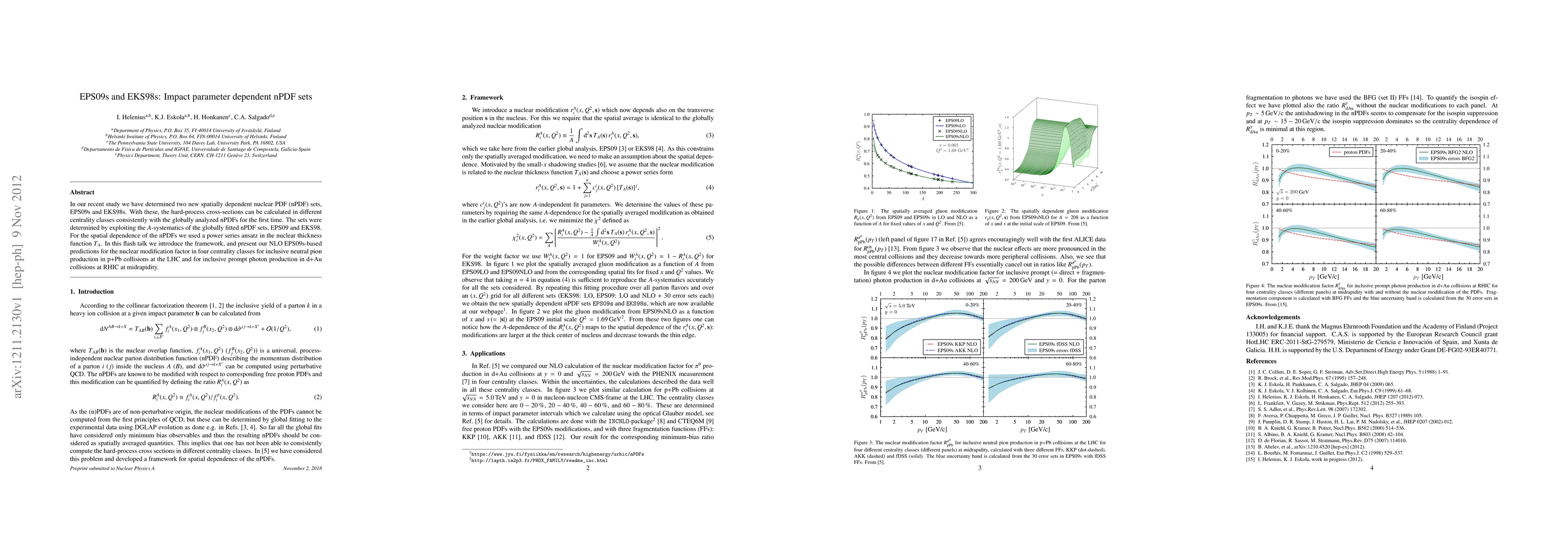 Researchers developed two new nPDF sets, EPS09s and EKS98s, to calculate hard-process cross-sections in different centrality classes with consistent global analysis. These sets provide predictions for nuclear modification factors in various particle production processes.