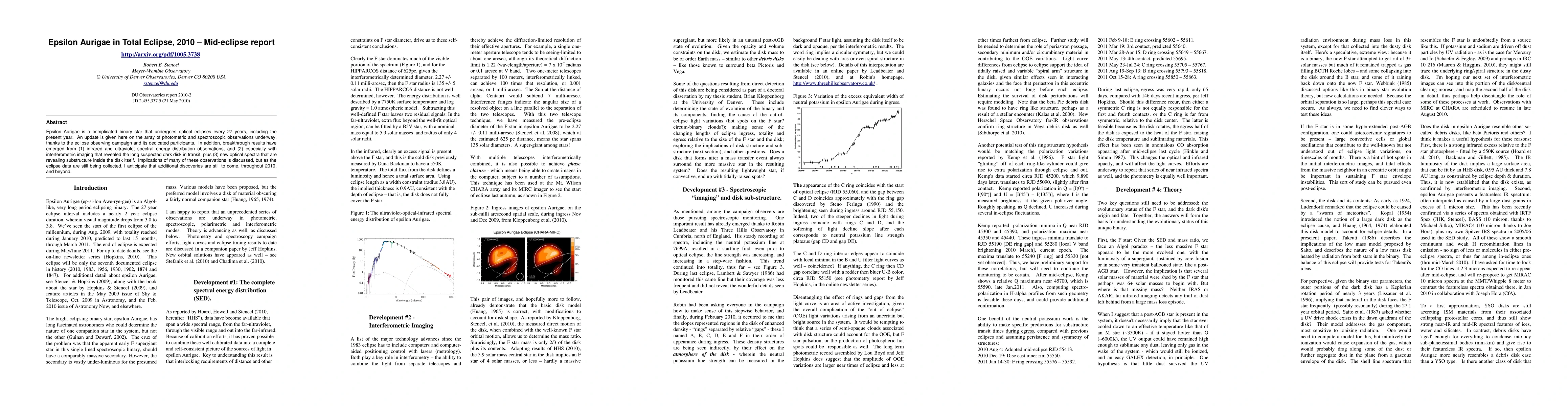 Scientists observed a complex binary star Epsilon Aurigae during its 2010 total eclipse, revealing new details about its dark disk in transit and substructure within the disk.
