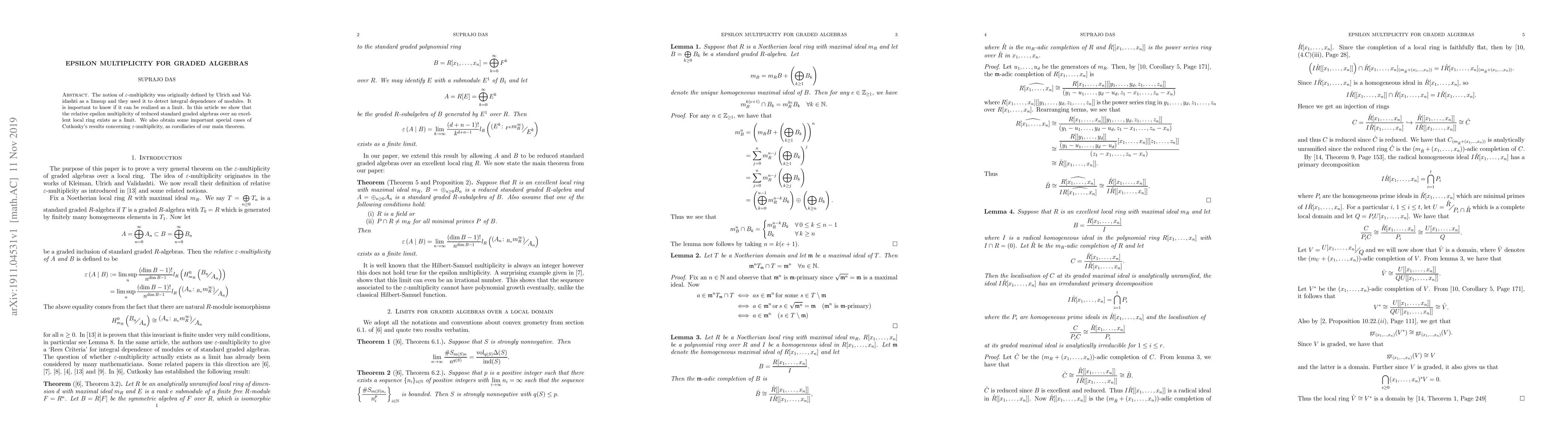 This paper demonstrates that the relative epsilon multiplicity of reduced standard graded algebras over an excellent local ring can be realized as a limit, extending the original definition by Ulrich and Validashti. It also provides significant special cases of Cutkosky's results on epsilon multiplicity as corollaries of the main theorem.