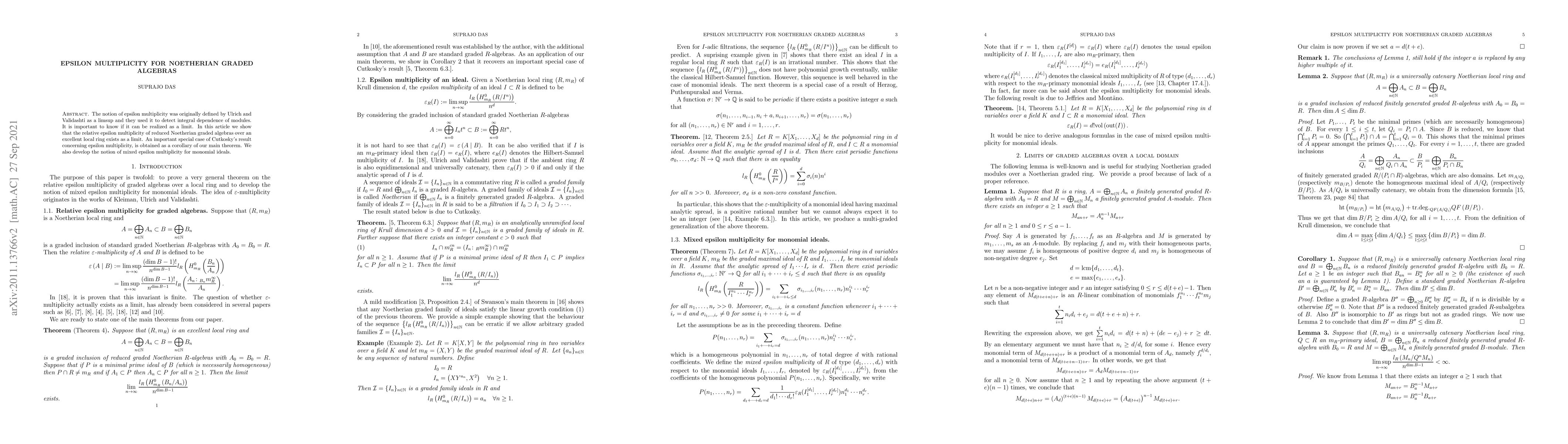This paper demonstrates that the relative epsilon multiplicity for reduced Noetherian graded algebras over an excellent local ring exists as a limit. It also introduces mixed epsilon multiplicity for monomial ideals and proves a special case of Cutkosky's result as a corollary.