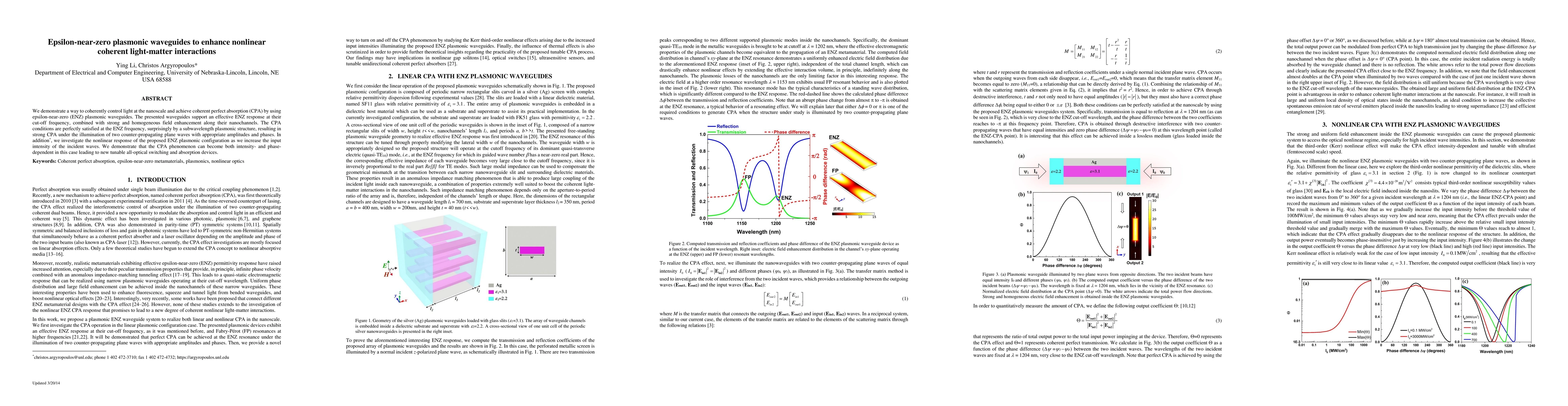 The research employed epsilon-near-zero plasmonic waveguides to enhance nonlinear coherent light-matter interactions.