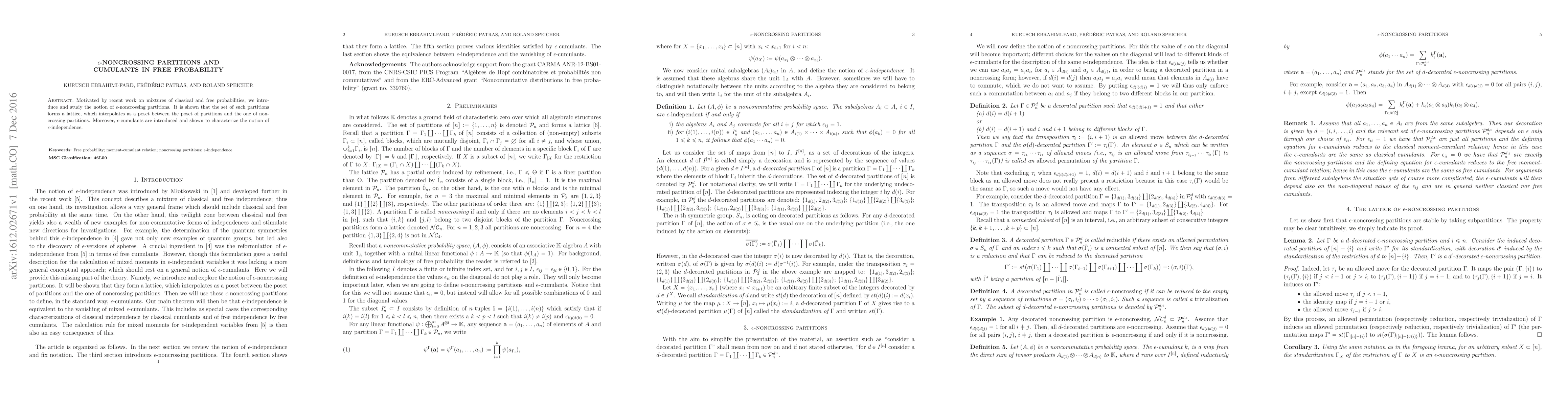 This paper introduces $\epsilon$-noncrossing partitions, which form a lattice interpolating between classical and noncrossing partitions, and defines $\epsilon$-cumulants that characterize $\epsilon$-independence in the context of mixtures of classical and free probabilities.
