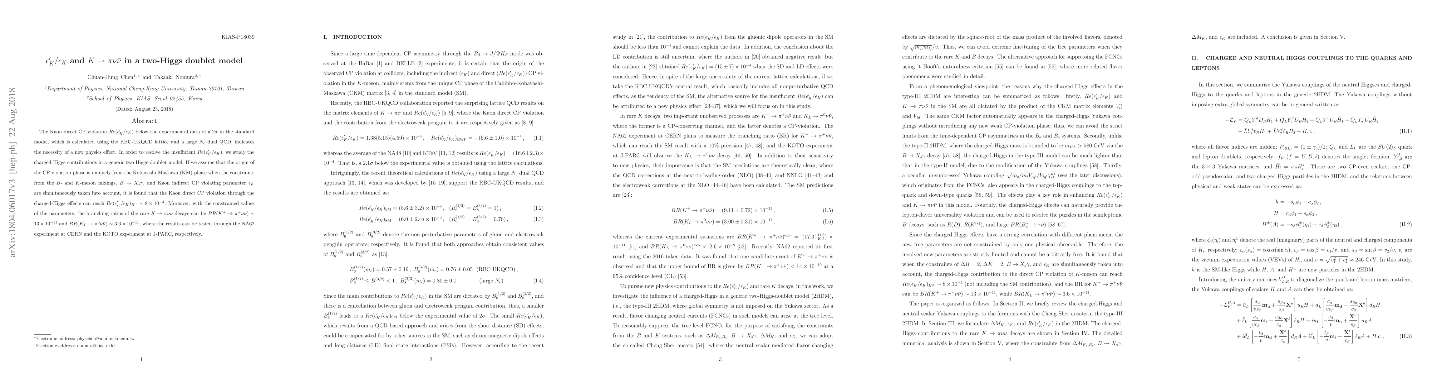 This paper explores the charged-Higgs contributions in a two-Higgs-doublet model to resolve the discrepancy in Kaon direct CP violation, finding that it can enhance $Re(\epsilon'_K/\epsilon_K)$ to $8\times 10^{-4}$. It also predicts branching ratios for rare $K \to \pi \nu \bar\nu$ decays that are testable at NA62 and KOTO experiments.