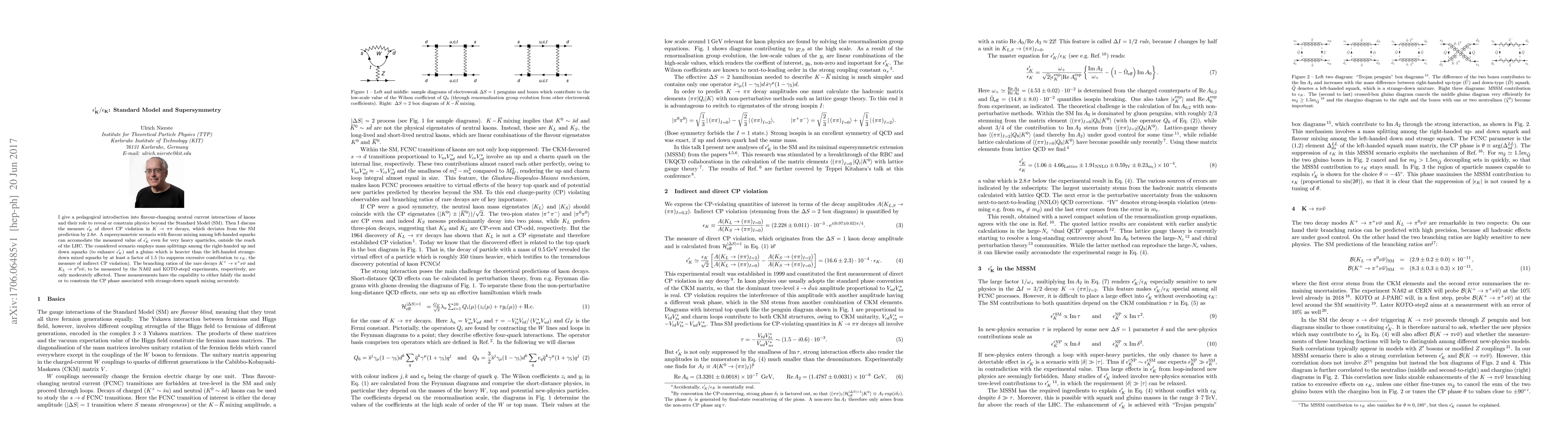This paper provides an introduction to flavour-changing neutral current interactions in kaons and their implications for physics beyond the Standard Model. It explores how a supersymmetric model with flavour mixing among left-handed squarks can accommodate the measured value of $\epsilon_K^\prime$, even with heavy sparticles, and discusses the potential of future experiments to either falsify the model or constrain the associated CP phase.