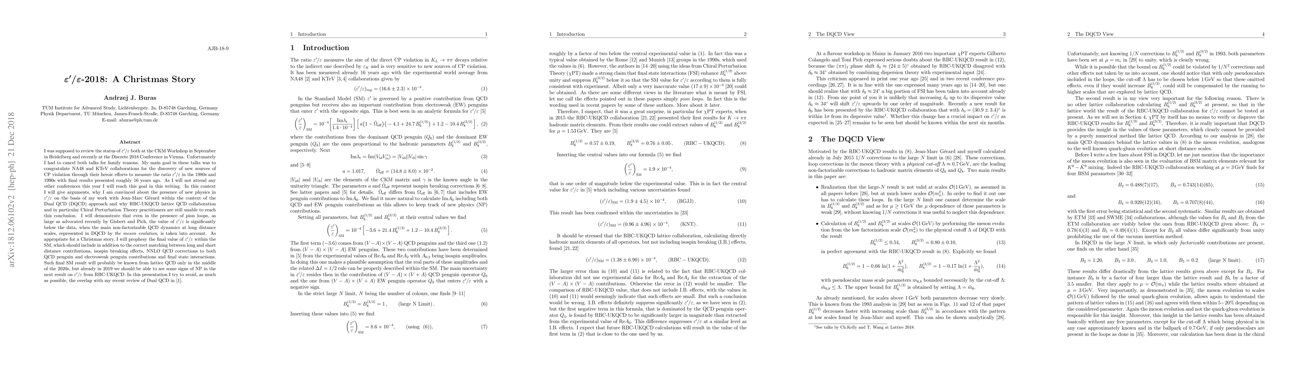 I was supposed to review the status of $\epsilon^\prime/\epsilon$ both at the CKM Workshop in September in Heidelberg and recently at the Discrete 2018 Conference in Vienna. Unfortunately I had to cancel both talks for family reasons. My main goal in these talks was to congratulate NA48 and KTeV collaborations for the discovery of new sources of CP violation through their heroic efforts to measure the ratio $\epsilon^\prime/\epsilon$ in the 1980s and 1990s with final results presented roughly 16 years ago. As I will not attend any other conferences this year I will reach this goal in this writing. In this context I will give arguments, why I am convinced about the presence of new physics in $\epsilon^\prime/\epsilon$ on the basis of my work with Jean-Marc Gerard within the context of the Dual QCD (DQCD) approach and why RBC-UKQCD collaboration and in particular Chiral Perturbation Theory practitioners are still unable to reach this conclusion. I will demonstrate that even in the presence of pion loops, as large as advocated recently by Gilbert and Pich, the value of $\epsilon^\prime/\epsilon$ is significantly below the data, when the main non-factorizable QCD dynamics at long distance scales, represented in DQCD by {the meson evolution}, is taken into account. As appriopriate for a Christmas story, I will prophesy the final value of $\epsilon^\prime/\epsilon$ within the SM, which should include in addition to the correct matching between long and short distance contributions, isospin breaking effects, NNLO QCD corrections to both QCD penguin and electroweak penguin contributions and final state interactions. Such final SM result will probably be known from lattice QCD only in the middle of 2020s, but already in 2019 we should be able to see some signs of NP in the next result on $\epsilon^\prime/\epsilon$ from RBC-UKQCD.