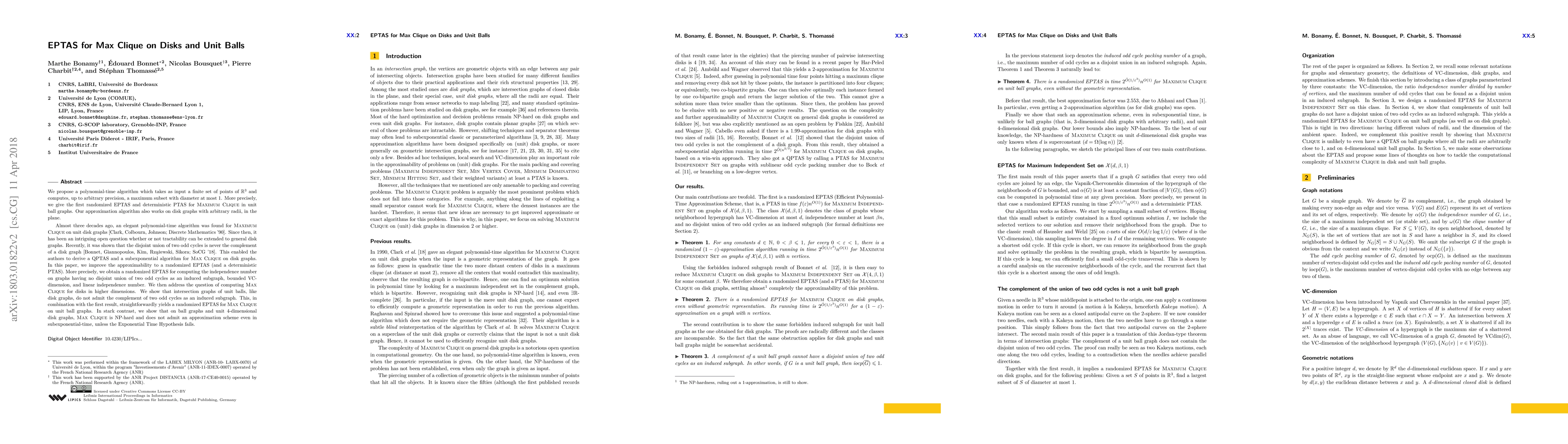 We propose a polynomial-time algorithm which takes as input a finite set of points of $\mathbb R^3$ and compute, up to arbitrary precision, a maximum subset with diameter at most $1$. More precisely, we give the first randomized EPTAS and deterministic PTAS for Maximum Clique in unit ball graphs. Our approximation algorithm also works on disk graphs with arbitrary radii. Almost three decades ago, an elegant polynomial-time algorithm was found for Maximum Clique on unit disk graphs [Clark, Colbourn, Johnson; Discrete Mathematics '90]. Since then, it has been an intriguing open question whether or not tractability can be extended to general disk graphs. Recently, it was shown that the disjoint union of two odd cycles is never the complement of a disk graph [Bonnet, Giannopoulos, Kim, Rz\k{a}\.{z}ewski, Sikora; SoCG '18]. This enabled the authors to derive a QPTAS and a subexponential algorithm for Max Clique on disk graphs. In this paper, we improve the approximability to a randomized EPTAS (and a deterministic PTAS). More precisely, we obtain a randomized EPTAS for computing the independence number on graphs having no disjoint union of two odd cycles as an induced subgraph, bounded VC-dimension, and large independence number. We then address the question of computing Max Clique for disks in higher dimensions. We show that intersection graphs of unit balls, like disk graphs, do not admit the complement of two odd cycles as an induced subgraph. This, in combination with the first result, straightforwardly yields a randomized EPTAS for Max Clique on unit ball graphs. In stark contrast, we show that on ball and unit 4-dimensional disk graphs, Max Clique is NP-hard and does not admit an approximation scheme even in subexponential-time, unless the Exponential Time Hypothesis fails.