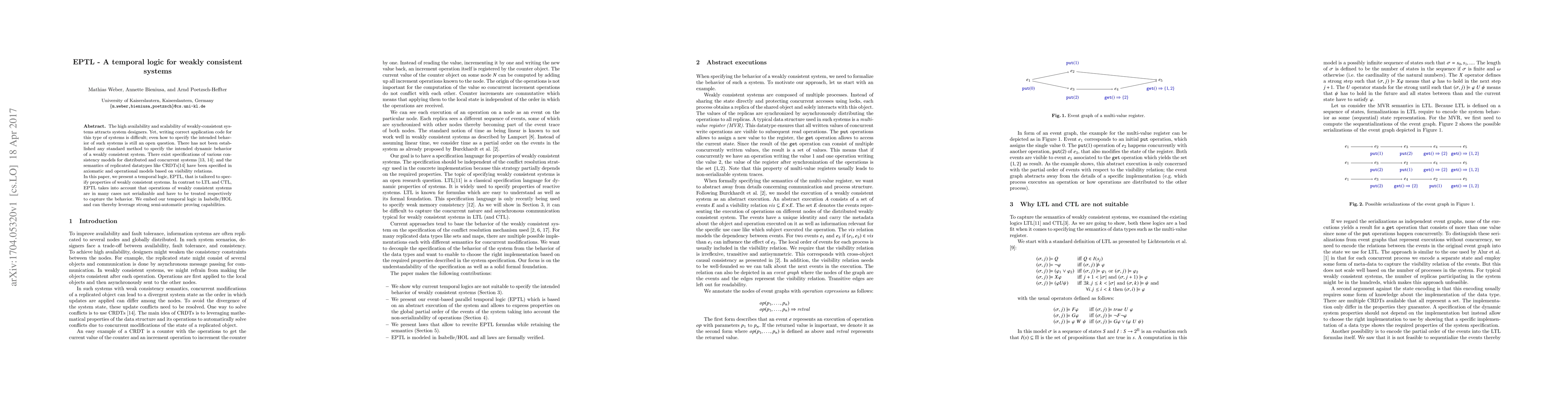 Researchers introduce EPTL, a temporal logic tailored for specifying properties of weakly consistent systems, addressing the need for a standardized method to describe dynamic behavior in these systems.