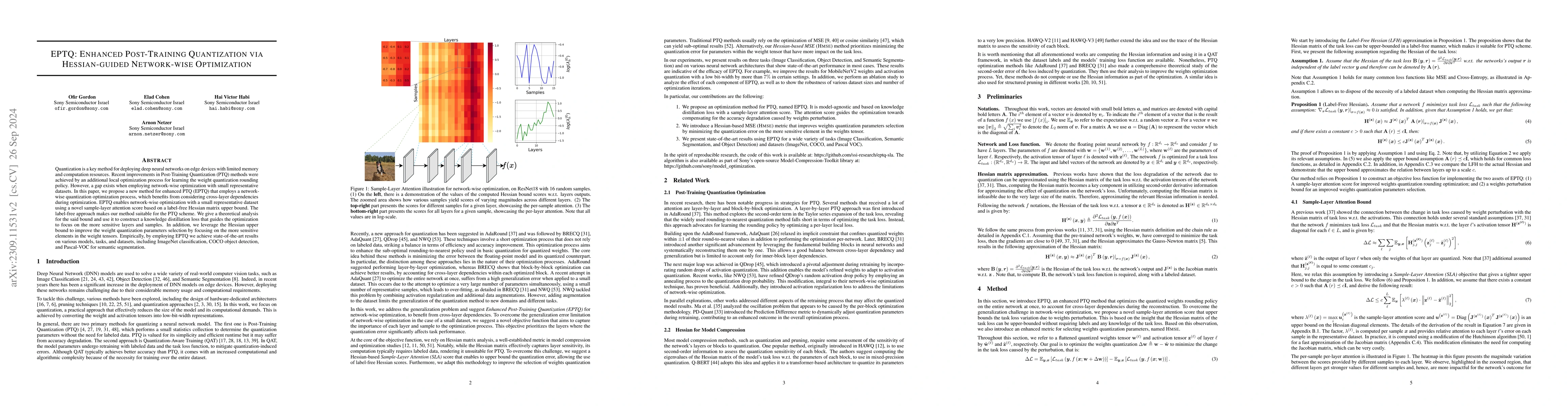 This paper proposes EPTQ, a novel method for Enhanced Post Training Quantization that leverages adaptive knowledge distillation and a label-free Hessian technique to minimize accuracy loss. The method achieves state-of-the-art results across various models and tasks, demonstrating its effectiveness and broad compatibility.