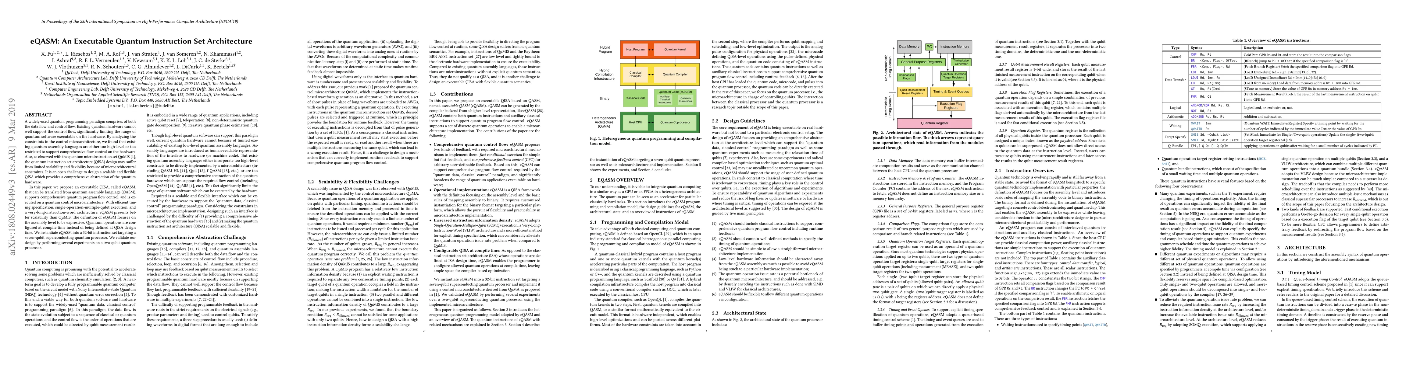 This paper proposes eQASM, a scalable and flexible executable quantum instruction set architecture (QISA) that addresses the limitations of existing quantum assembly languages in supporting comprehensive control flow on quantum hardware. eQASM features efficient timing, single-operation-multiple-qubit execution, and a very-long-instruction-word architecture, validated through experiments on a two-qubit quantum processor.