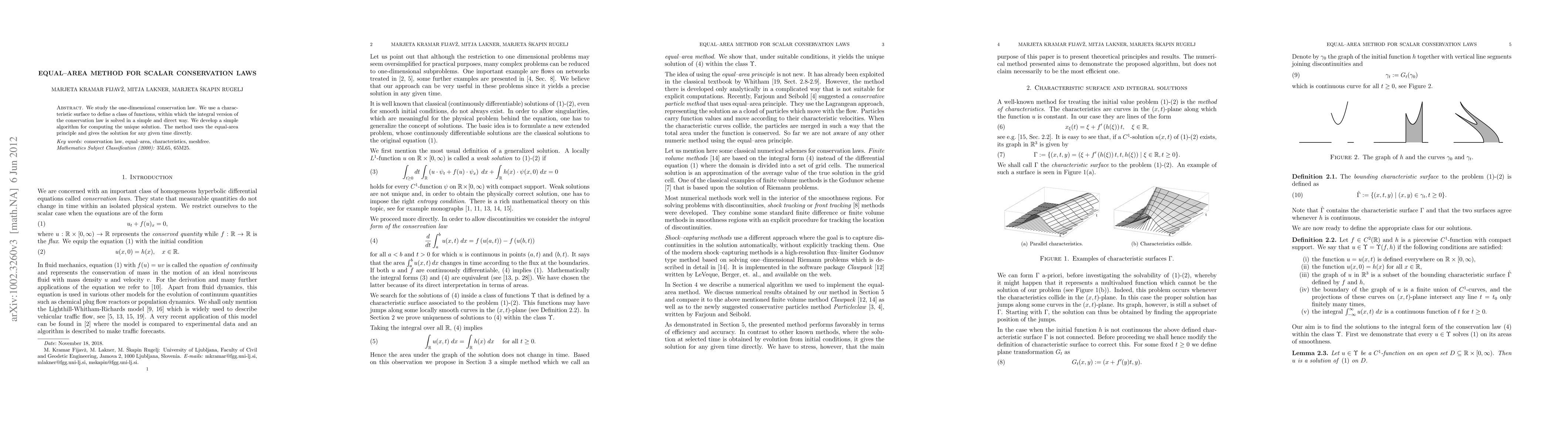 Summary: This paper introduces a straightforward numerical method based on the equal-area principle for solving one-dimensional scalar conservation laws, directly computing the unique entropy admissible weak solution at any given time.
