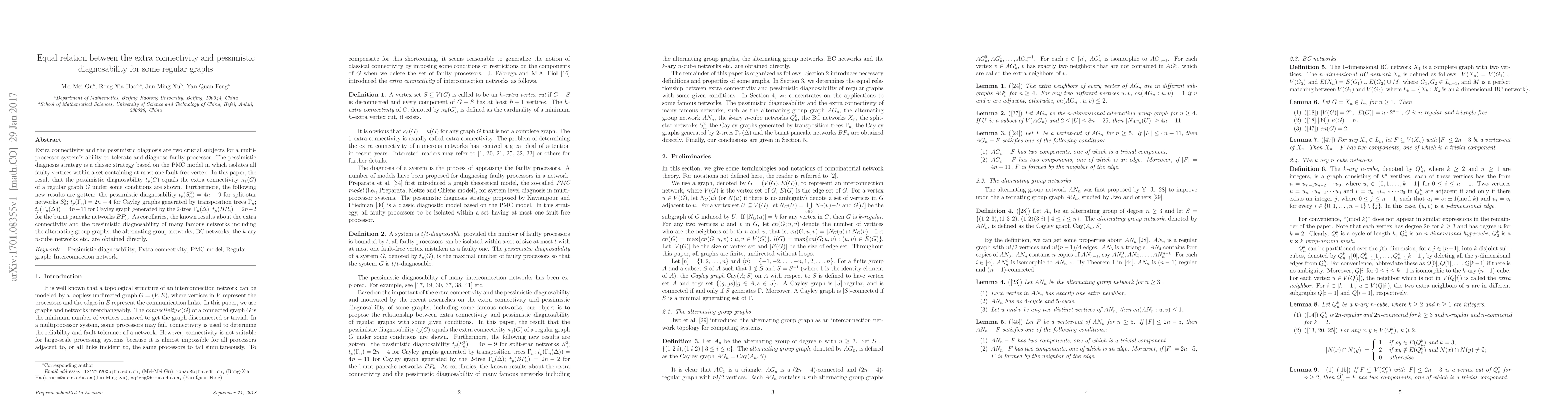 Extra connectivity and the pessimistic diagnosis are two crucial subjects for a multiprocessor system's ability to tolerate and diagnose faulty processor. The pessimistic diagnosis strategy is a classic strategy based on the PMC model in which isolates all faulty vertices within a set containing at most one fault-free vertex. In this paper, the result that the pessimistic diagnosability $t_p(G)$ equals the extra connectivity $\kappa_{1}(G)$ of a regular graph $G$ under some conditions are shown. Furthermore, the following new results are gotten: the pessimistic diagnosability $t_p(S_n^2)=4n-9$ for split-star networks $S_n^2$, $t_p(\Gamma_n)=2n-4$ for Cayley graphs generated by transposition trees $\Gamma_n$, $t_p(\Gamma_{n}(\Delta))=4n-11$ for Cayley graph generated by the $2$-tree $\Gamma_{n}(\Delta)$, $t_{p}(BP_n)=2n-2$ for the burnt pancake networks $BP_n$. As corollaries, the known results about the extra connectivity and the pessimistic diagnosability of many famous networks including the alternating group graphs, the alternating group networks, BC networks, the $k$-ary $n$-cube networks etc. are obtained directly.