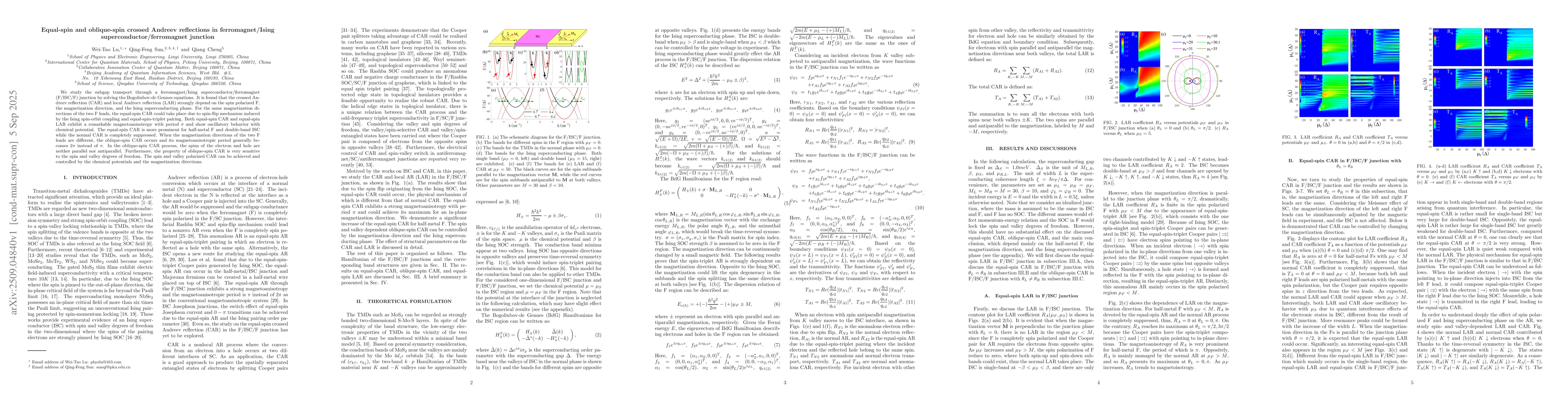 We study the subgap transport through a ferromagnet/Ising superconductor/ferromagnet (F/ISC/F) junction by solving the Bogoliubov-de Gennes equations. It is found that the crossed Andreev reflection (CAR) and local Andreev reflection (LAR) strongly depend on the spin polarized F, the magnetization direction, and the Ising superconducting phase. For the same magnetization directions of the two F leads, the equal-spin CAR could take place due to spin-flip mechanism induced by the Ising spin-orbit coupling and equal-spin-triplet pairing. Both equal-spin CAR and equal-spin LAR exhibit a remarkable magnetoanisotropy with period \pi and show oscillatory behavior with chemical potential. The equal-spin CAR is more prominent for half-metal F and double-band ISC while the normal CAR is completely suppressed. When the magnetization directions of the two F leads are different, the oblique-spin CAR occurs and its magnetoanisotropic period generally becomes 2\pi instead of \pi. In the oblique-spin CAR process, the spins of the electron and hole are neither parallel nor antiparallel. Furthermore, the property of oblique-spin CAR is very sensitive to the spin and valley degrees of freedom. The spin and valley polarized CAR can be achieved and controlled by the chemical potentials and the magnetization directions.