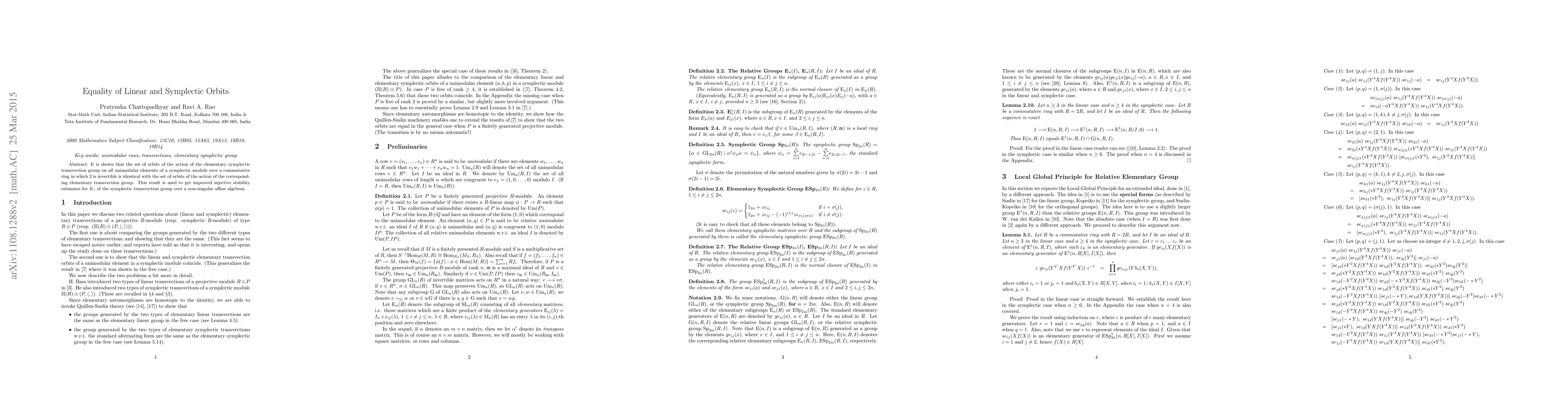 It is shown that the set of orbits of the action of the elementary symplectic transvection group on all unimodular elements of a symplectic module over a commutative ring of characteristic not 2 is identical with the set of orbits of the action of the corresponding elementary transvection group. This result is used to get improved injective stability estimates for $K_1$ of the symplectic transvection group over a non-singular affine algebras.