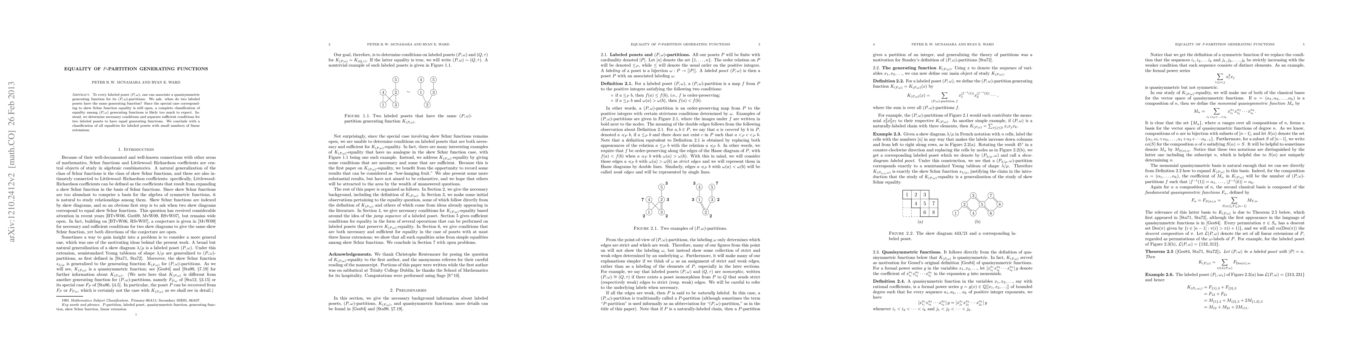 The paper investigates necessary and sufficient conditions for two labeled posets to have equal generating functions, focusing on small linear extensions and providing a classification of such equalities.