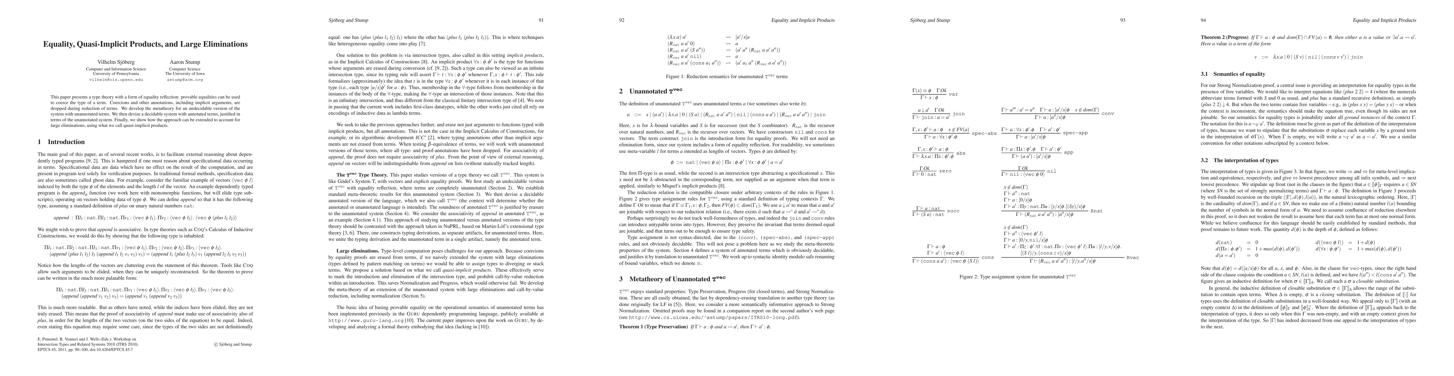 This paper presents a type theory with a form of equality reflection: provable equalities can be used to coerce the type of a term. Coercions and other annotations, including implicit arguments, are dropped during reduction of terms. We develop the metatheory for an undecidable version of the system with unannotated terms. We then devise a decidable system with annotated terms, justified in terms of the unannotated system. Finally, we show how the approach can be extended to account for large eliminations, using what we call quasi-implicit products.