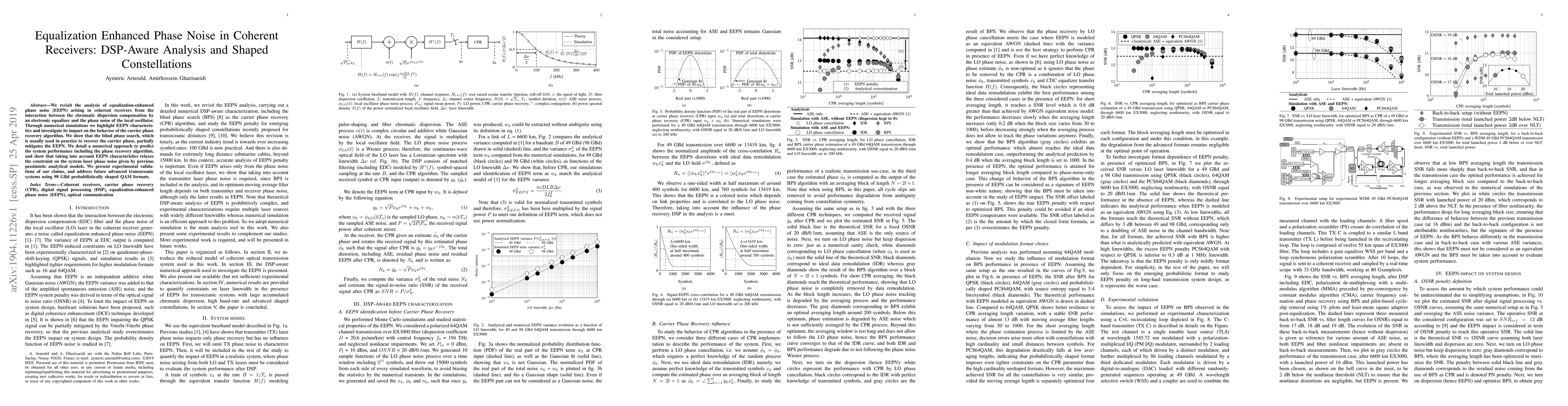 We revisit the analysis of equalization-enhanced phase noise (EEPN) arising in coherent receivers from the interaction between the chromatic dispersion compensation by an electronic equalizer and the phase noise of the local oscillator. Through numerical simulations we highlight EEPN characteristics and investigate its impact on the behavior of the carrier phase recovery algorithm. We show that the blind phase search, which is usually used in practice to recover the carrier phase, partially mitigates the EEPN. We detail a numerical approach to predict the system performance including the phase recovery algorithm, and show that taking into account EEPN characteristics relaxes the constraint on the system laser phase noise given by previous pessimistic analytical models. We present experimental validations of our claims, and address future advanced transoceanic systems using 98 GBd probabilistically shaped QAM formats.
