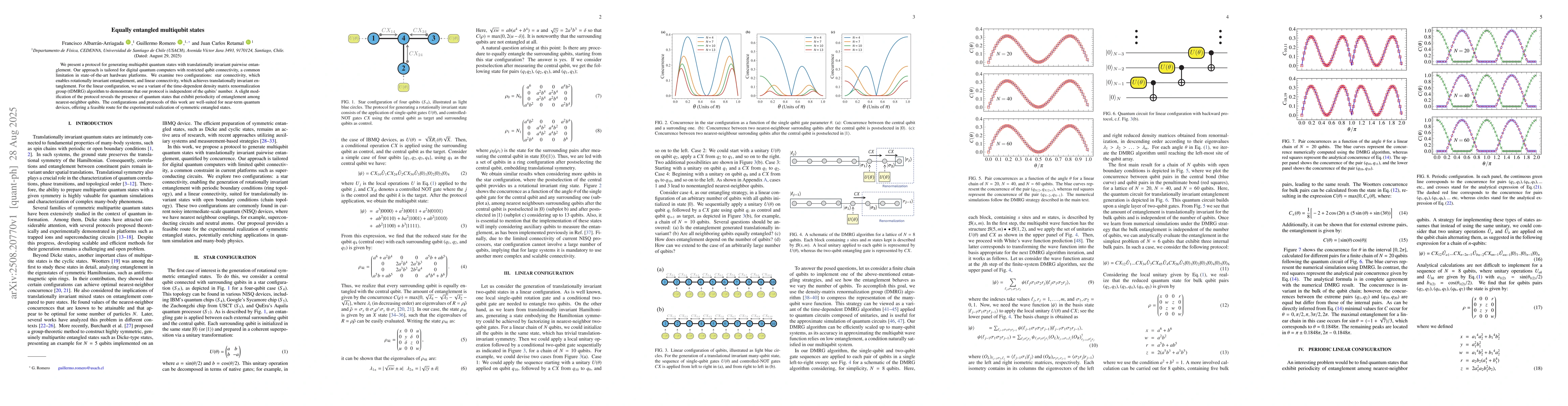 We present a protocol for generating multiqubit quantum states with translationally invariant pairwise entanglement. Our approach is tailored for digital quantum computers with restricted qubit connectivity, a common limitation in state-of-the-art hardware platforms. We examine two configurations: star connectivity, which enables rotationally invariant entanglement, and linear connectivity, which achieves translationally invariant entanglement. For the linear configuration, we use a variant of the time-dependent density matrix renormalization group (tDMRG) algorithm to demonstrate that our protocol is independent of the qubits' number. A slight modification of the protocol reveals the presence of quantum states that exhibit periodicity of entanglement among nearest-neighbor qubits. The configurations and protocols of this work are well-suited for near-term quantum devices, offering a feasible route for the experimental realization of symmetric entangled states.