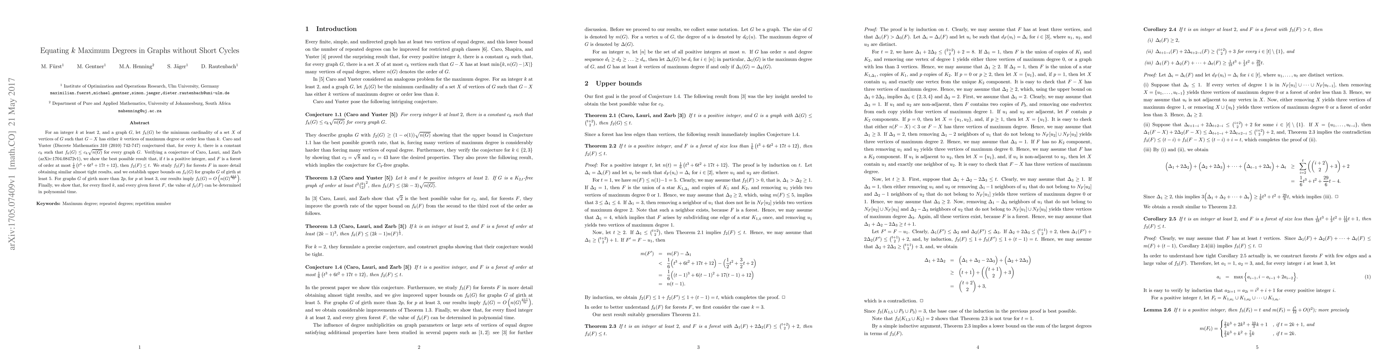 For an integer $k$ at least $2$, and a graph $G$, let $f_k(G)$ be the minimum cardinality of a set $X$ of vertices of $G$ such that $G-X$ has either $k$ vertices of maximum degree or order less than $k$. Caro and Yuster (Discrete Mathematics 310 (2010) 742-747) conjectured that, for every $k$, there is a constant $c_k$ such that $f_k(G)\leq c_k \sqrt{n(G)}$ for every graph $G$. Verifying a conjecture of Caro, Lauri, and Zarb (arXiv:1704.08472v1), we show the best possible result that, if $t$ is a positive integer, and $F$ is a forest of order at most $\frac{1}{6}\left(t^3+6t^2+17t+12\right)$, then $f_2(F)\leq t$. We study $f_3(F)$ for forests $F$ in more detail obtaining similar almost tight results, and we establish upper bounds on $f_k(G)$ for graphs $G$ of girth at least $5$. For graphs $G$ of girth more than $2p$, for $p$ at least $3$, our results imply $f_k(G)=O\left(n(G)^{\frac{p+1}{3p}}\right)$. Finally, we show that, for every fixed $k$, and every given forest $F$, the value of $f_k(F)$ can be determined in polynomial time.