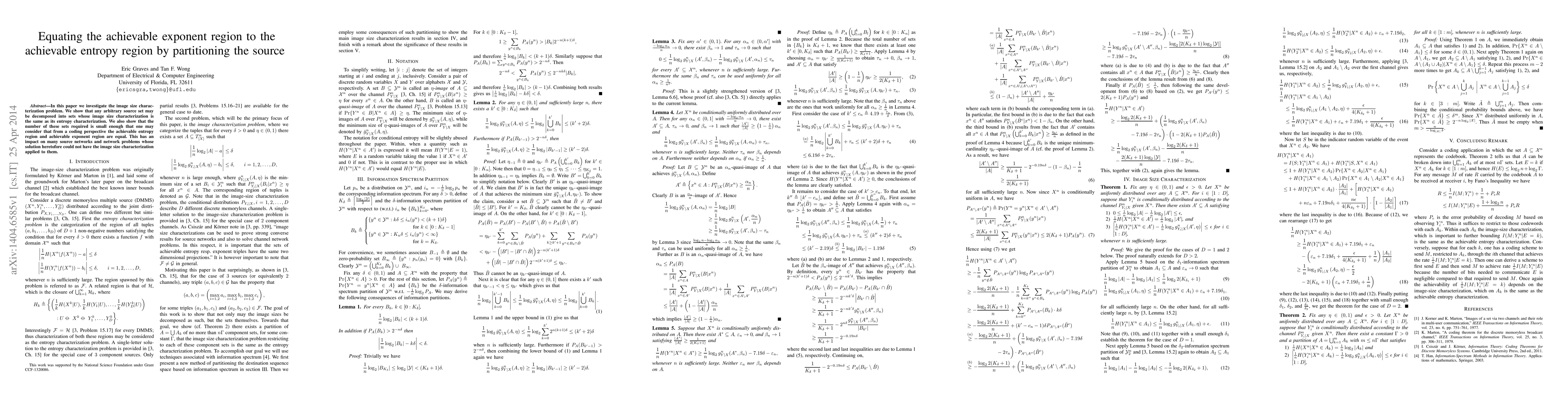 In this paper we investigate the image size characterization problem. We show that any arbitrary source set may be decomposed into sets whose image size characterization is the same as its entropy characterization. We also show that the number of these sets required is small enough that one may consider that from a coding perspective the achievable entropy region and achievable exponent region are equal. This has an impact on many source networks and network problems whose solution heretofore could not have the image size characterization applied to them.