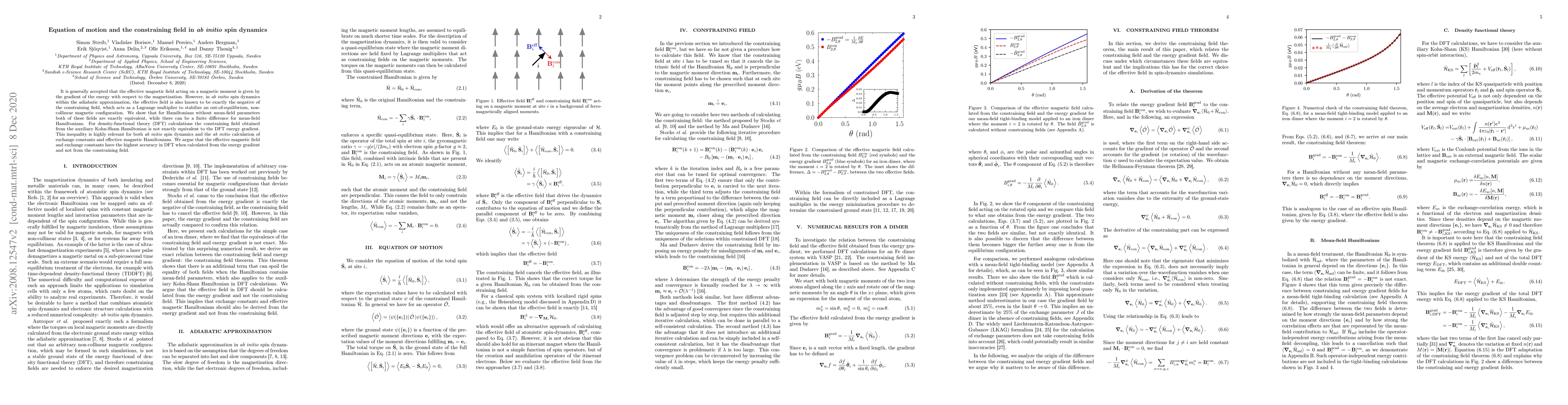 This paper investigates the relationship between the effective magnetic field and the constraining field in ab initio spin dynamics, showing that they are equivalent for Hamiltonians without mean-field parameters but differ for those with mean-field parameters. The study highlights the importance of using the energy gradient for accurate DFT calculations of exchange constants and magnetic fields.