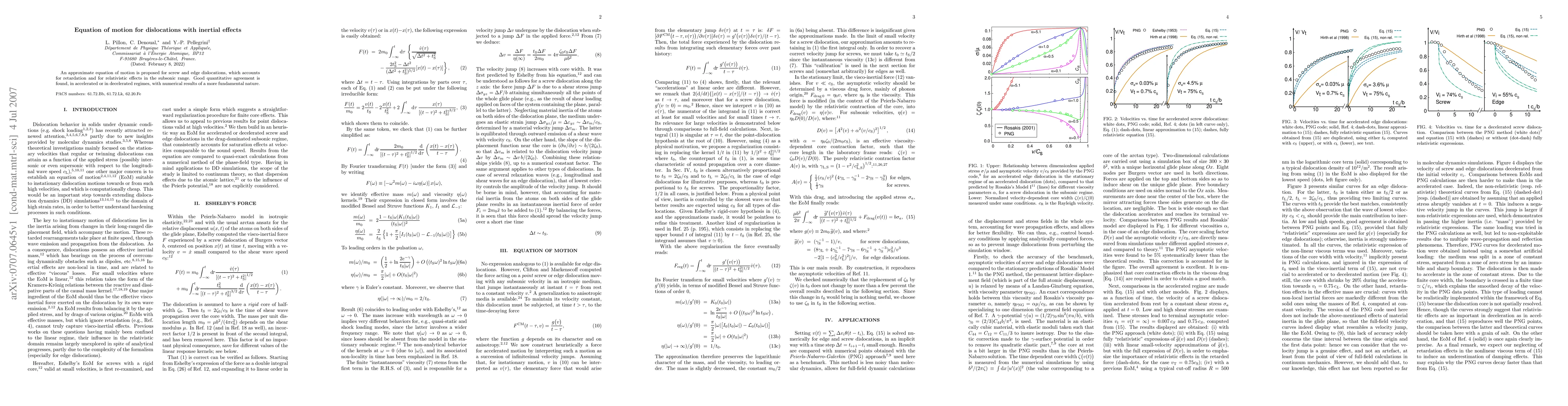 An approximate equation of motion is proposed for screw and edge dislocations, which accounts for retardation and for relativistic effects in the subsonic range. Good quantitative agreement is found, in accelerated or in decelerated regimes, with numerical results of a more fundamental nature.