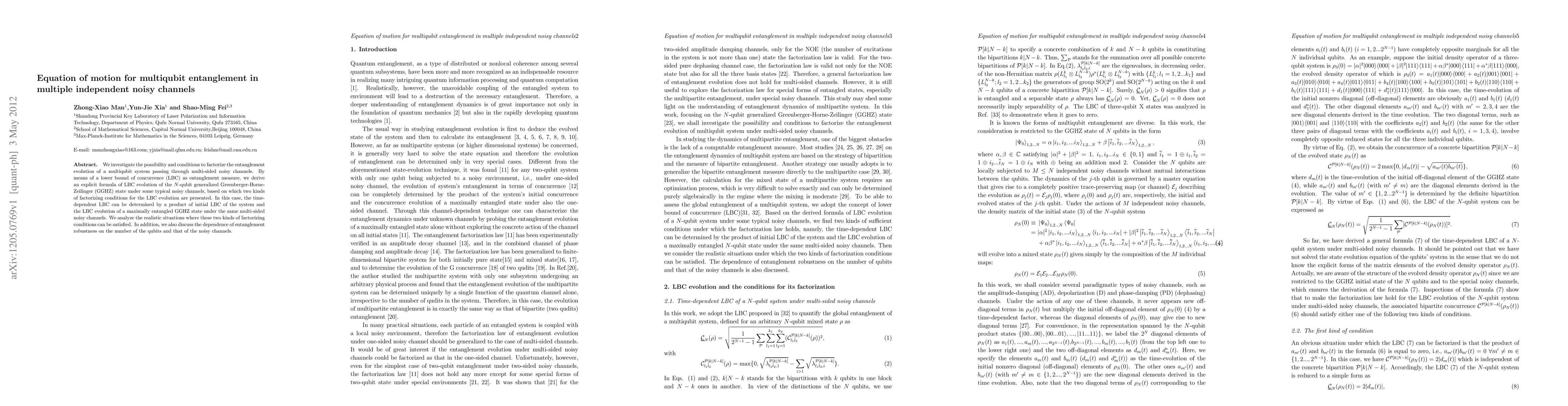 This paper investigates the factorization conditions for the entanglement evolution of multiqubit systems through multiple noisy channels, deriving an explicit formula for the lower bound of concurrence (LBC) evolution of N-qubit GGHZ states. The study finds that under certain conditions, the time-dependent LBC can be factored into the initial LBC and the evolution of a maximally entangled state, and analyzes the robustness of entanglement concerning the number of qubits and channels.