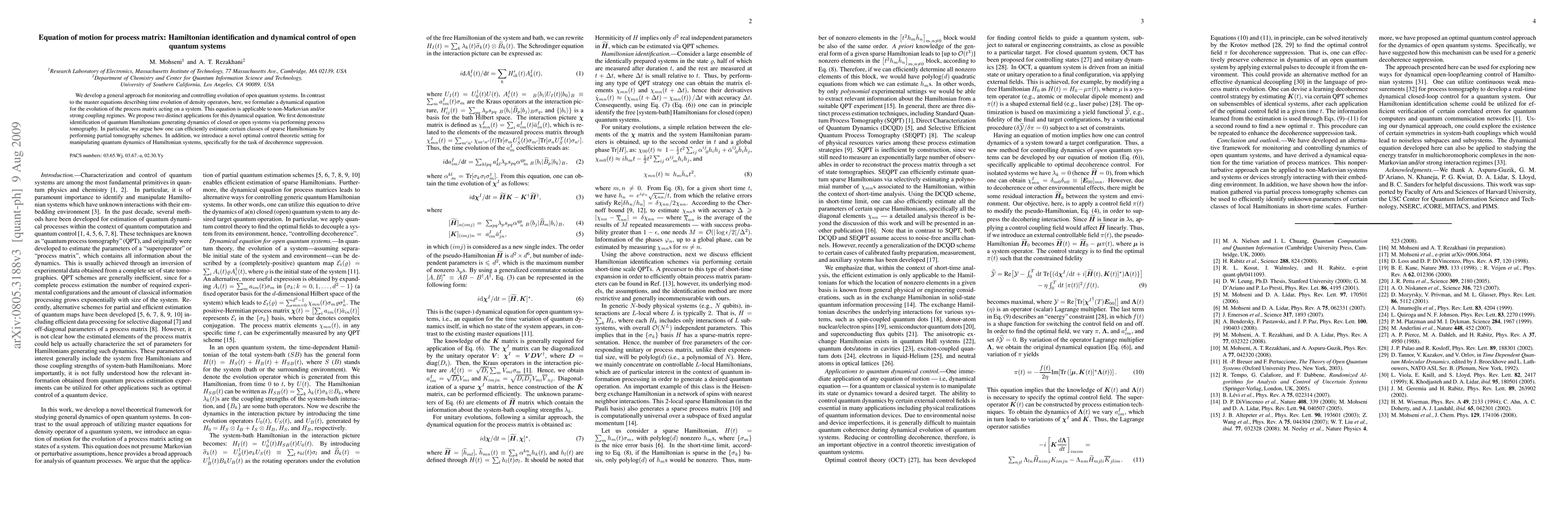 Researchers develop a new approach to control open quantum systems by creating a dynamical equation for the process matrix, allowing for efficient estimation of Hamiltonians and optimal control of decoherence suppression.