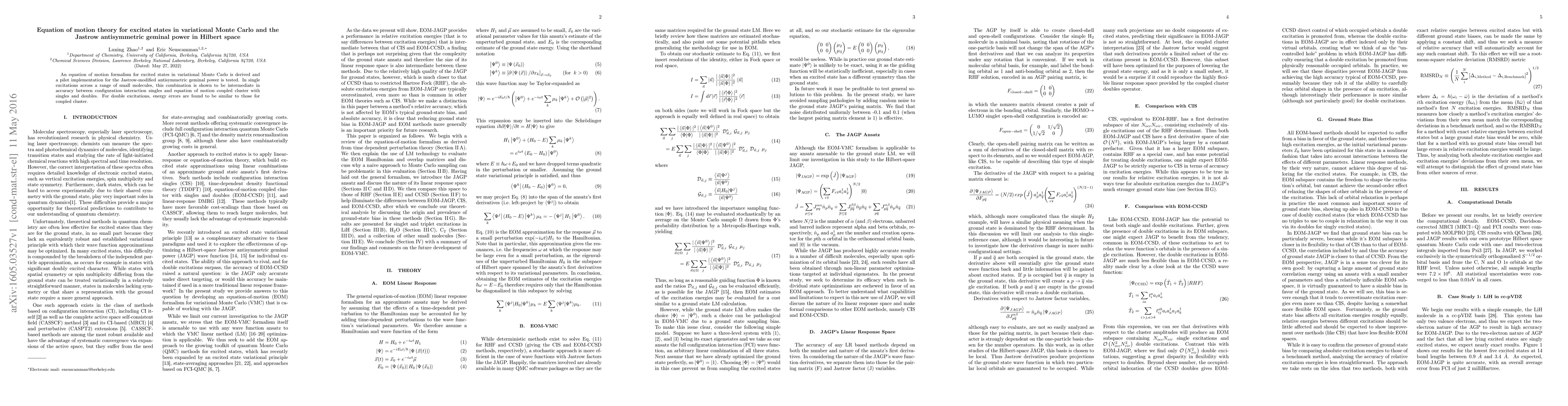 A new method combining variational Monte Carlo with Jastrow antisymmetric geminal power is proposed for calculating excited states in molecules, showing improved accuracy between configuration interaction singles and coupled cluster methods.
