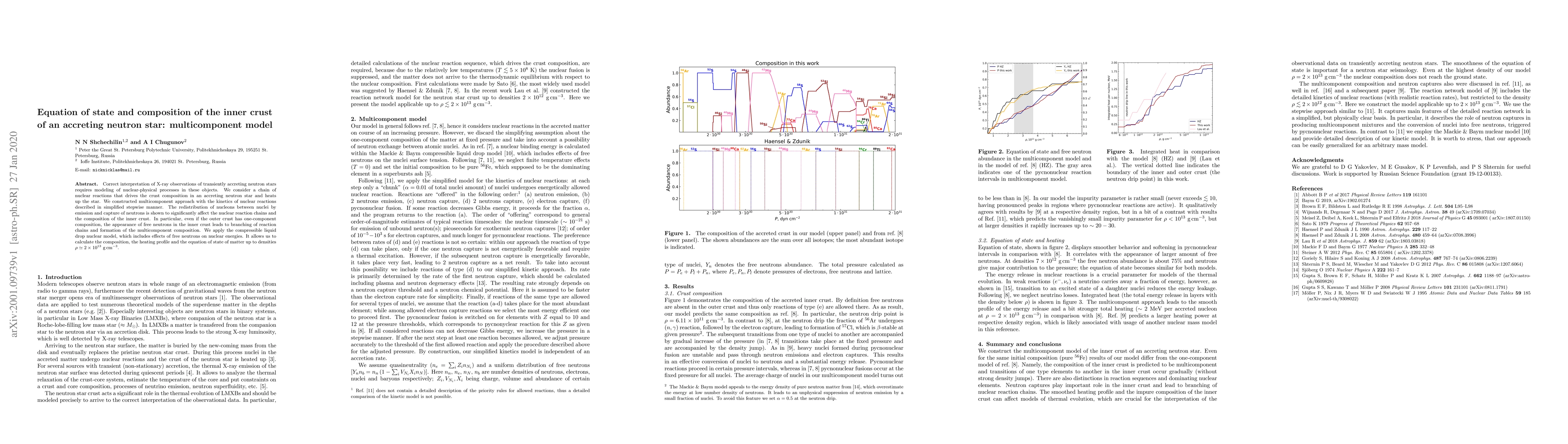 This paper models nuclear reactions in the inner crust of accreting neutron stars using a multicomponent approach, showing how neutron redistribution influences reaction chains and leads to a multicomponent composition. The compressible liquid drop nuclear model is applied to calculate the equation of state, heating profile, and composition up to densities of ~2 × 10^13 g cm^-3.