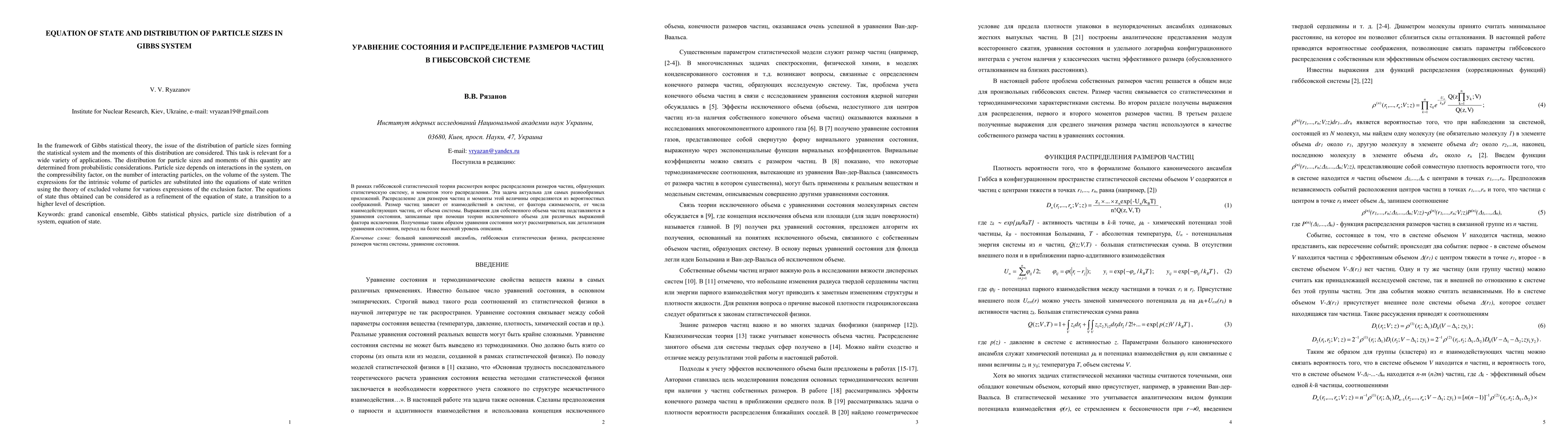 In the framework of Gibbs statistical theory, the issue of the distribution of particle sizes forming the statistical system and the moments of this distribution are considered. This task is relevant for a wide variety of applications. The distribution for particle sizes and moments of this quantity are determined from probabilistic considerations. Particle size depends on interactions in the system, on the compressibility factor, on the number of interacting particles, on the volume of the system. The expressions for the intrinsic volume of particles are substituted into the equations of state written using the theory of excluded volume for various expressions of the exclusion factor. The equations of state thus obtained can be considered as a refinement of the equation of state, a transition to a higher level of description.
