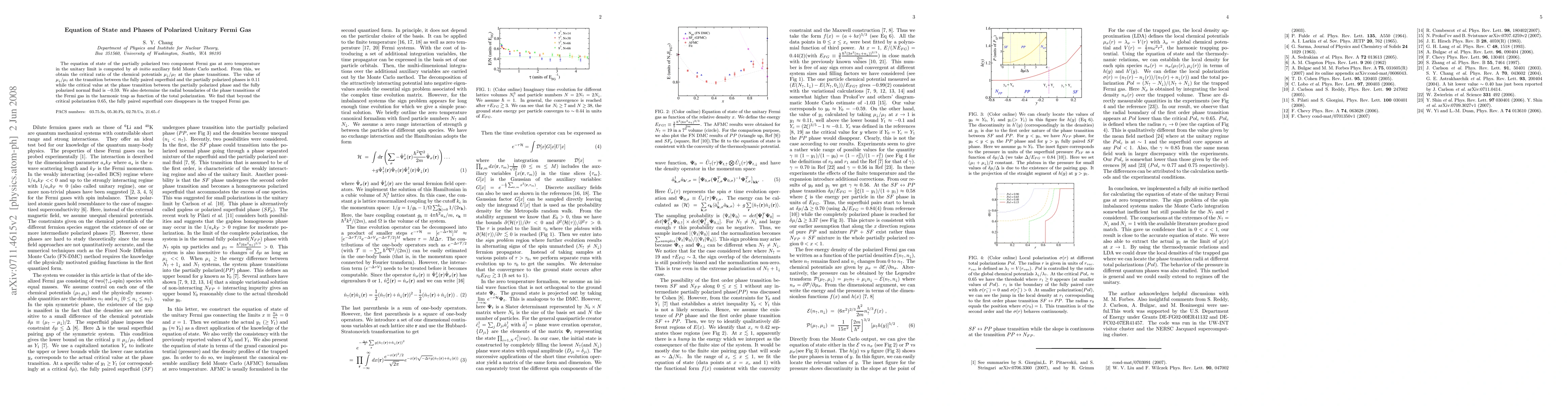 This paper uses the auxiliary field Monte Carlo method to determine the equation of state for a polarized unitary Fermi gas at zero temperature, identifying critical chemical potential ratios for phase transitions and finding that the superfluid core disappears beyond a polarization of 0.65 in a harmonic trap.