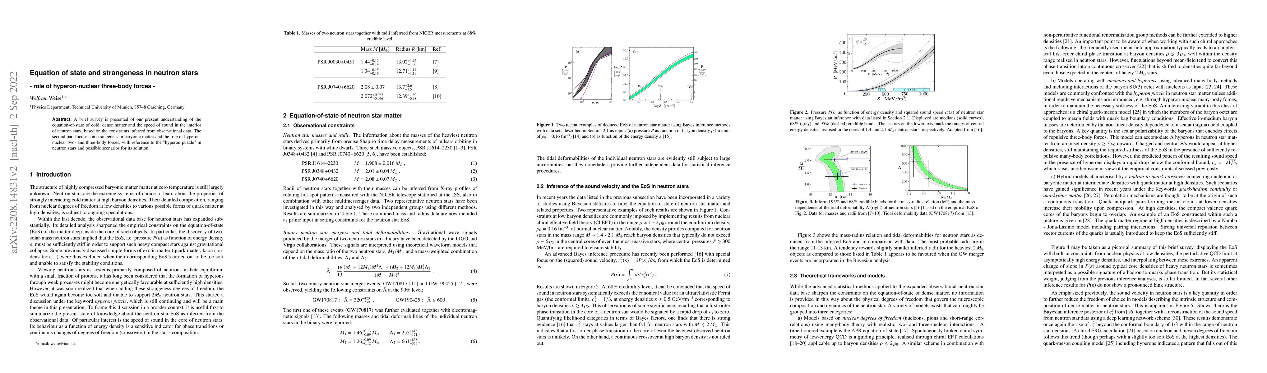 A brief survey is presented of our present understanding of the equation-of-state of cold, dense matter and the speed of sound in the interior of neutron stars, based on the constraints inferred from observational data. The second part focuses on strangeness in baryonic matter and the role of hyperon-nuclear two- and three-body forces, with reference to the "hyperon puzzle" in neutron stars and possible scenarios for its solution.